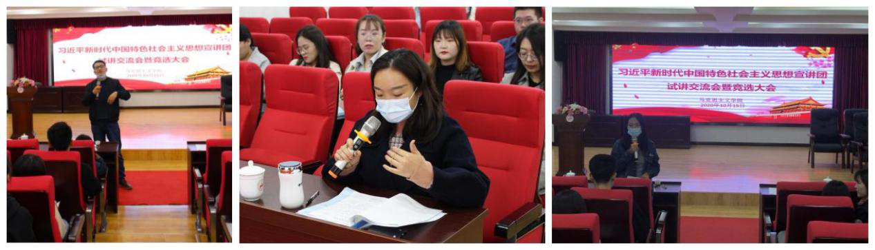 参加宣讲团成员竞选的20位研究生依次上台试讲。各位同学秉持着“让青年影响青年,让青年服务社会”的初心,精心选题。各具风格的试讲,给老师同学们留下了深刻的印象。