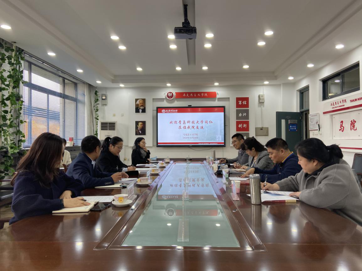 天津师范大学谈球吧副经理李朝阳教授在座谈中详细介绍了天师大教务处对马院的支持与服务工作、思政课教学“三入八讲”教学法、形势与政策课教学、实践教学以及“李朝阳名师工作室”工作开展情况等。