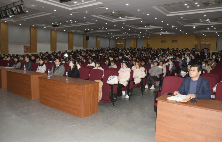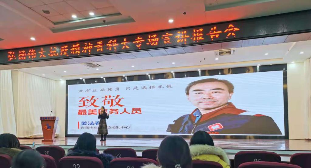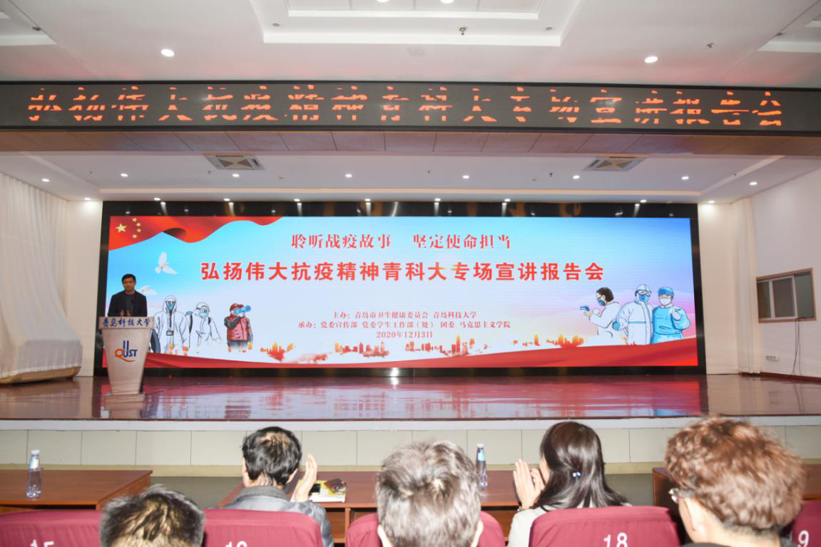 12月3号下午,由青岛市卫健委和谈球吧网页版登录入口宣传部、团委、员工处、谈球吧联合主办的“聆听战疫故事 坚定使命担当”弘扬伟大的抗疫精神青科专场宣讲会于崂山校区第二报告厅顺利举行。谈球吧四位思政课教师带领300多名本科生聆听了报告。