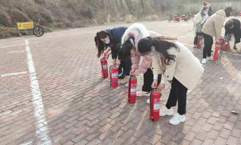 随后,赵老师为大家讲解了火灾的类型、灭火器的工作原理、使用方法以及使用灭火器时的相关注意事项。最后,三位老师就如何正确使用灭火器扑灭模拟火灾处的火焰对大家进行了逐一指导。