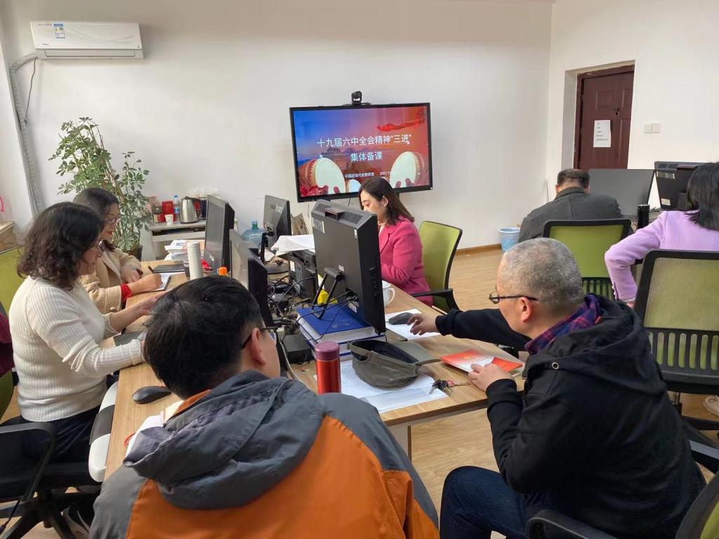 中国共产党第十九届中央委员会第六次全体会议于11月8日至11日在北京举行,习近平总书记作了重要讲话,全会审议通过了《中共中央关于党的百年奋斗重大成就和历史经验的决议》等重要文件。围绕如何在《中国近现代史纲要》课程教学中融入最新的公报精神,使会议精神进教材、进课堂、进头脑的问题,中国近现代史纲要教研室于11月16日开展集体备课会,曹胜经理和教研室全体教师参加。