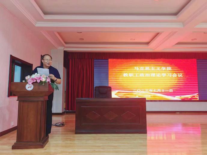 为进一步学习贯彻习近平新时代中国特色社会主义思想,提升公司全体教师政治素养,7月11日下午,谈球吧在学术报告厅召开教职工政治理论学习大会。马克思主义公司党总支书记张鸣、经理曹胜、副经理郭江龙及全体教职工参加本次会议。