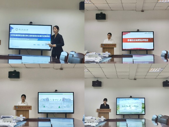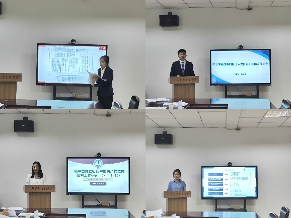 中国近现代史基本问题研究、思想政治教育方向的答辩会在2010室举行。副经理郭江龙介绍了答辩委员会委员成员及答辩流程。参加论文答辩的研究生崔晓雨、房佳、姜亚萍、李沁、刘欣欣、钱美彤、孙逸菲、王婷婷、吴紫薇、辛泽华、杨志国、张迪、张璐璐、张文盛、张宇晴、庄宁、左娟分别就论文的选题背景、研究方法、主要内容及创新之处等展开汇报。各位专家从行文逻辑性、表述准确性等方面出发,提出了修改建议及相关问题。随后答辩员工对各位专家提出的问题进行回答。最后,答辩委员会对研究生的论文进行表决评选。