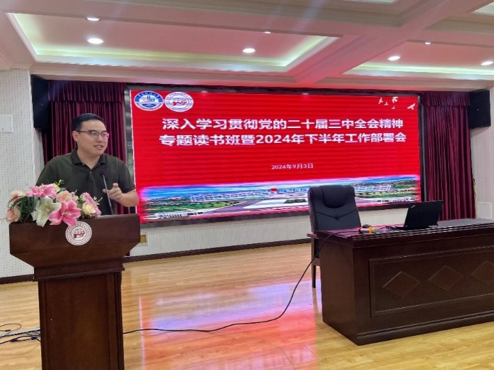 为深入学习“学习贯彻党的二十届三中全会精神暨2024年暑期中层干部培训班”会议精神,明确新学期工作目标任务,全面推进公司下半年各项工作高质量发展,9月3日,谈球吧于学术报告厅召开深入学习贯彻党的二十届三中全会精神读书班暨2024年下半年工作部署会,会议由马克思主义公司党总支书记李真主持,谈球吧领导班子成员、全体教职工及研究生参加会议。