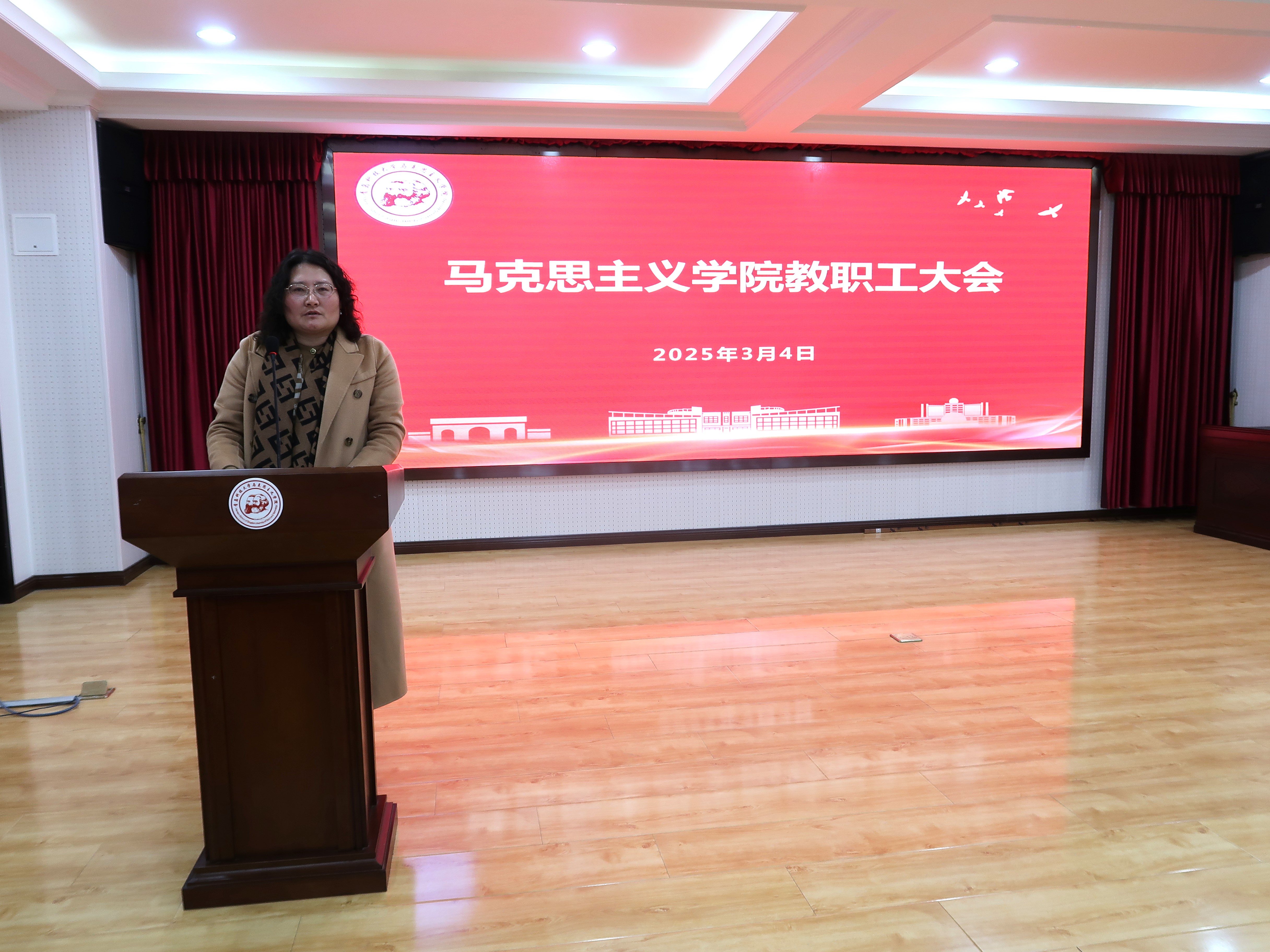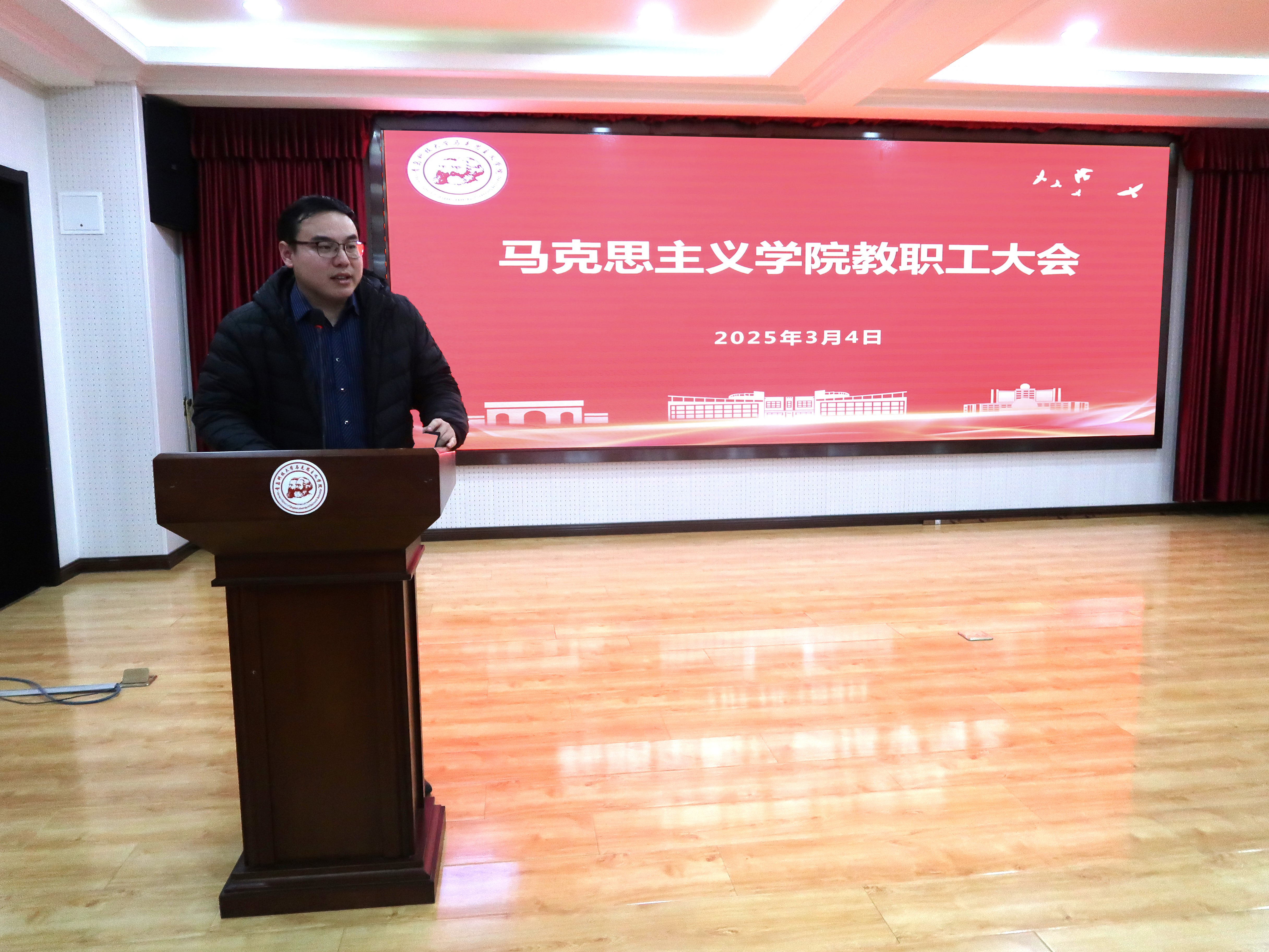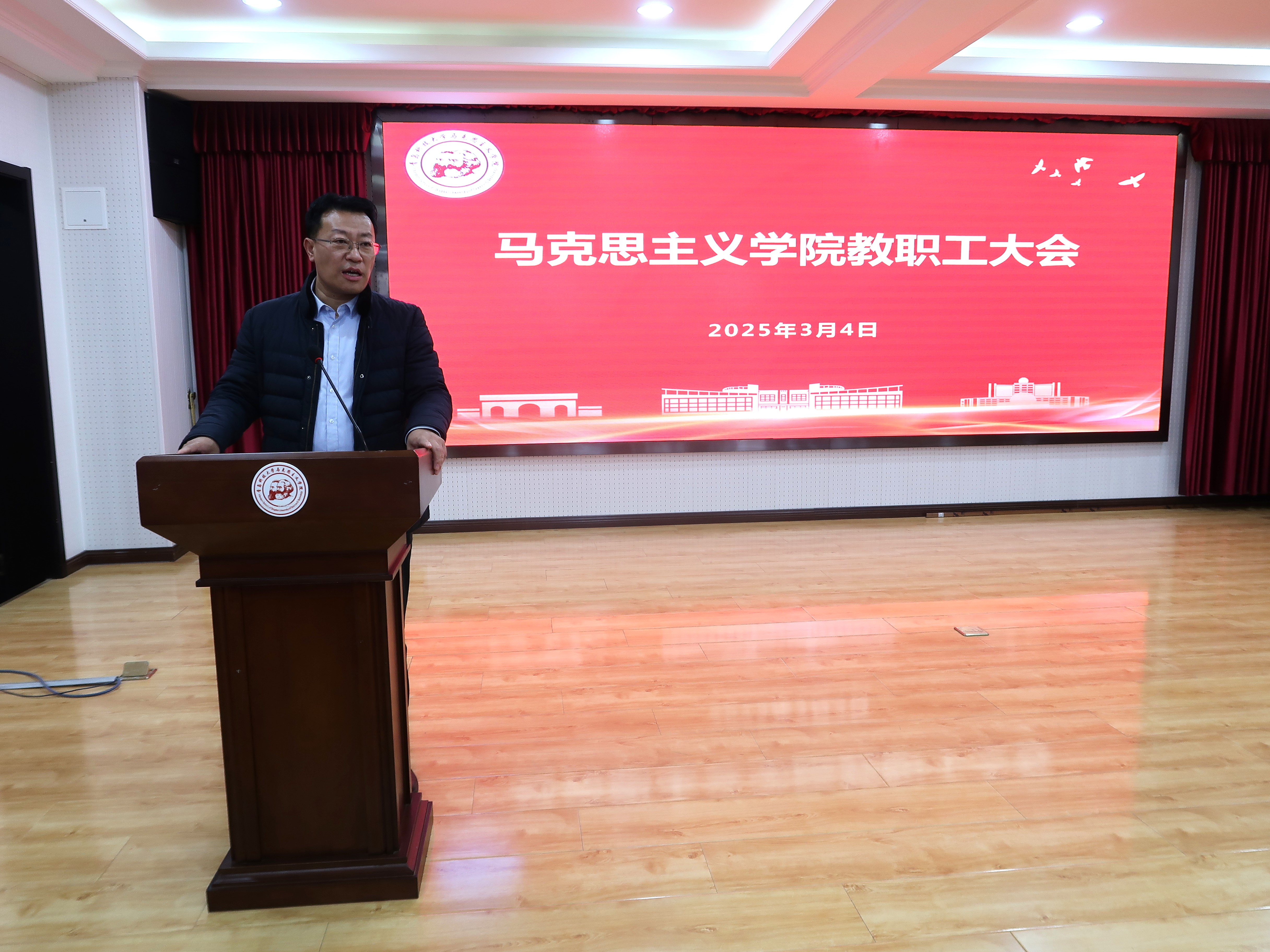 副经理郭江龙、王建美分别就研究生、科研、教学工作进行安排部署。郭江龙分析了2025年研究生招生、预答辩安排及社科基金申报,强调学科竞赛的重要性。王建美结合近期教学情况,指出教师教学过程中存在的问题与不足,并着重强调数智技术融入思政课堂的重要性。