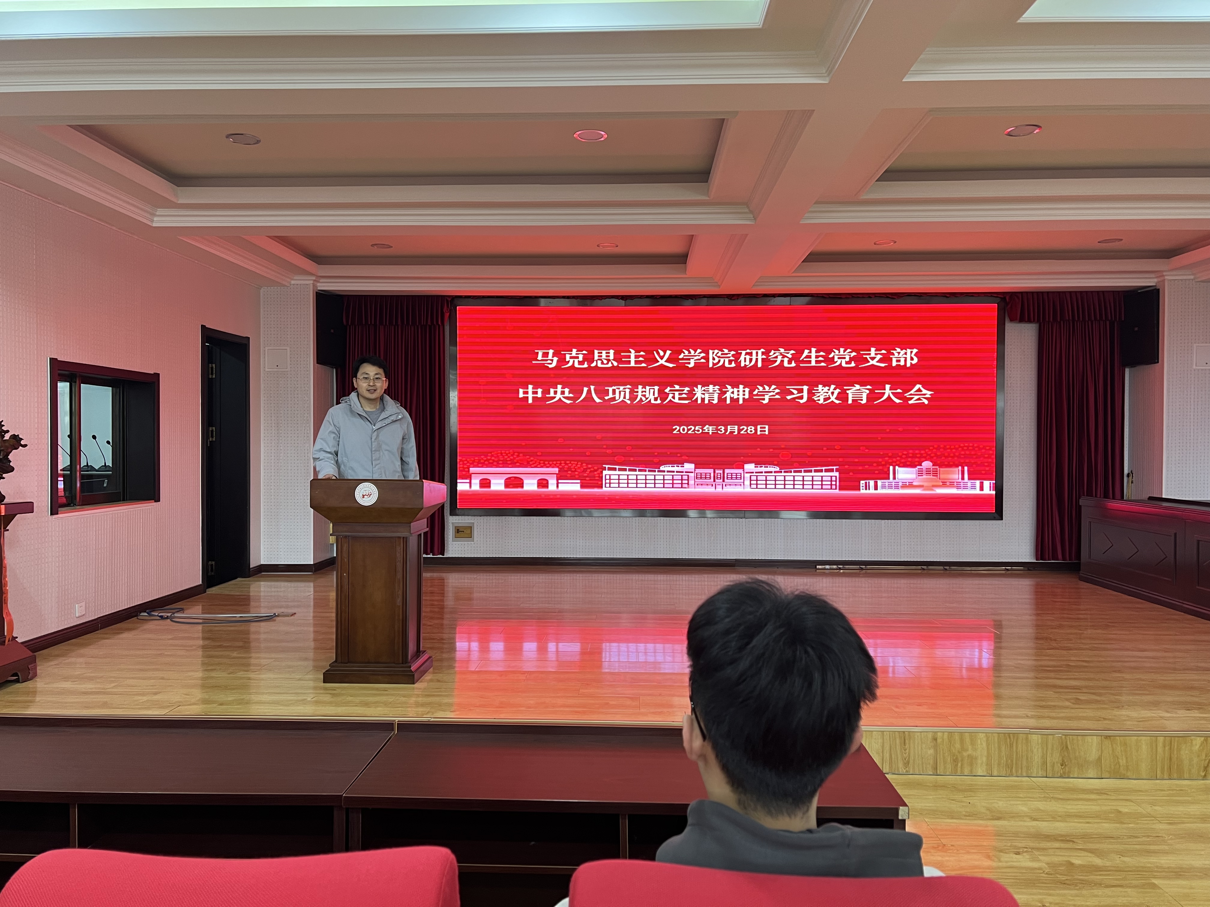 此外,各党支部书记结合自身工作实际,为教研室教师以及研究生党员讲授专题党课。马克思主义基本原理教研室党支部书记郭士民从马克思主义基本原理角度,深入解读了中央八项规定精神的理论内涵与实践要求;马克思主义中国化教研室党支部书记薛君结合中国化马克思主义的创新发展,阐释了作风建设对新时代教育事业的重要意义;中国近现代史教研室党支部书记杨晓越通过历史案例回顾,剖析了党在不同历史时期贯彻八项规定精神的经验启示;思想道德与法治教研室党支部书记马丽娟从三个方面深入阐述了学习落实中央八项规定精神的重要意义;研究生党支部书记田雨结合研究生党员实际,解读中央八项规定精神要求,强调廉洁自律与纪律意识,引导研究生党员内化于心、外化于行。
