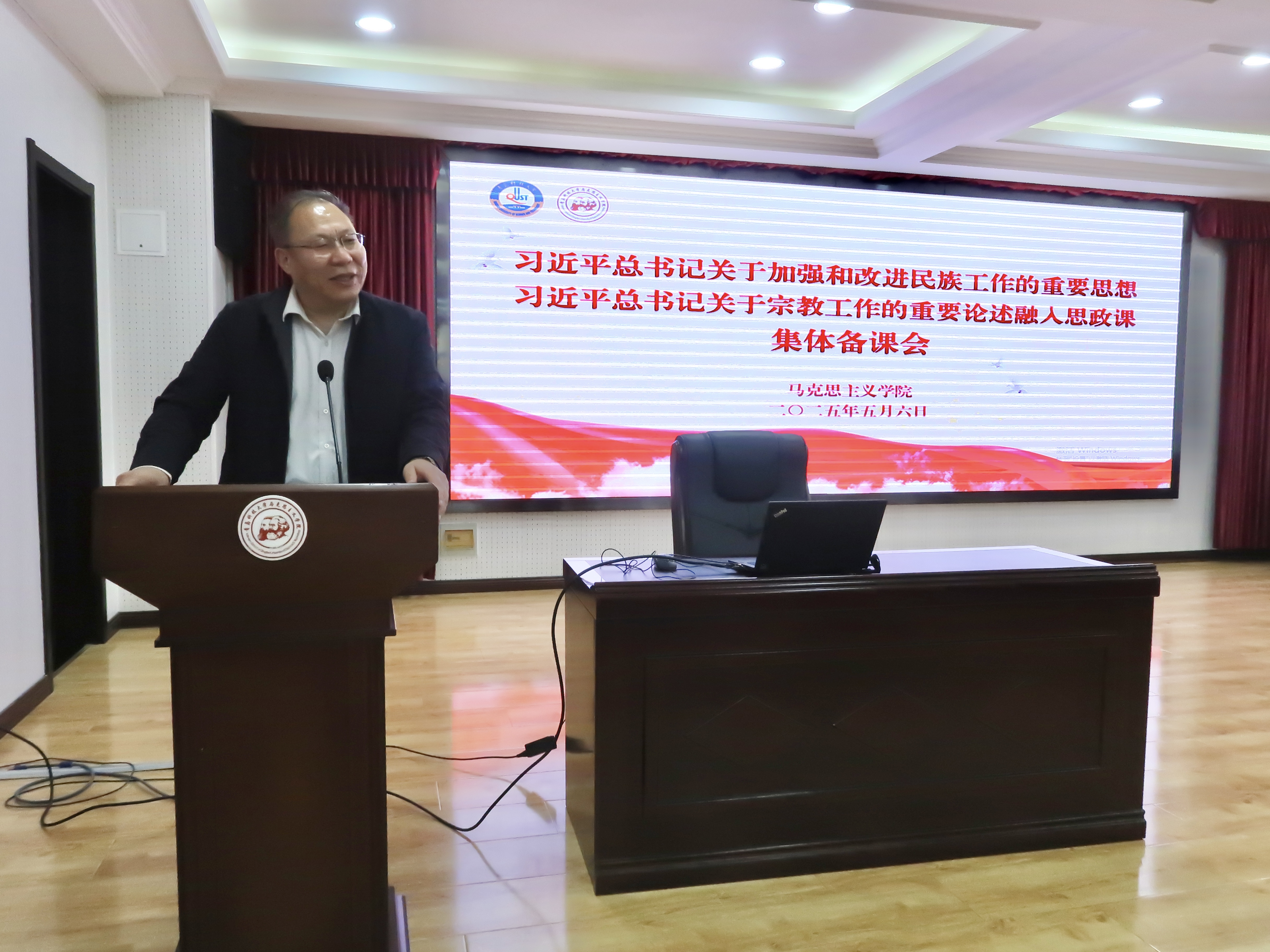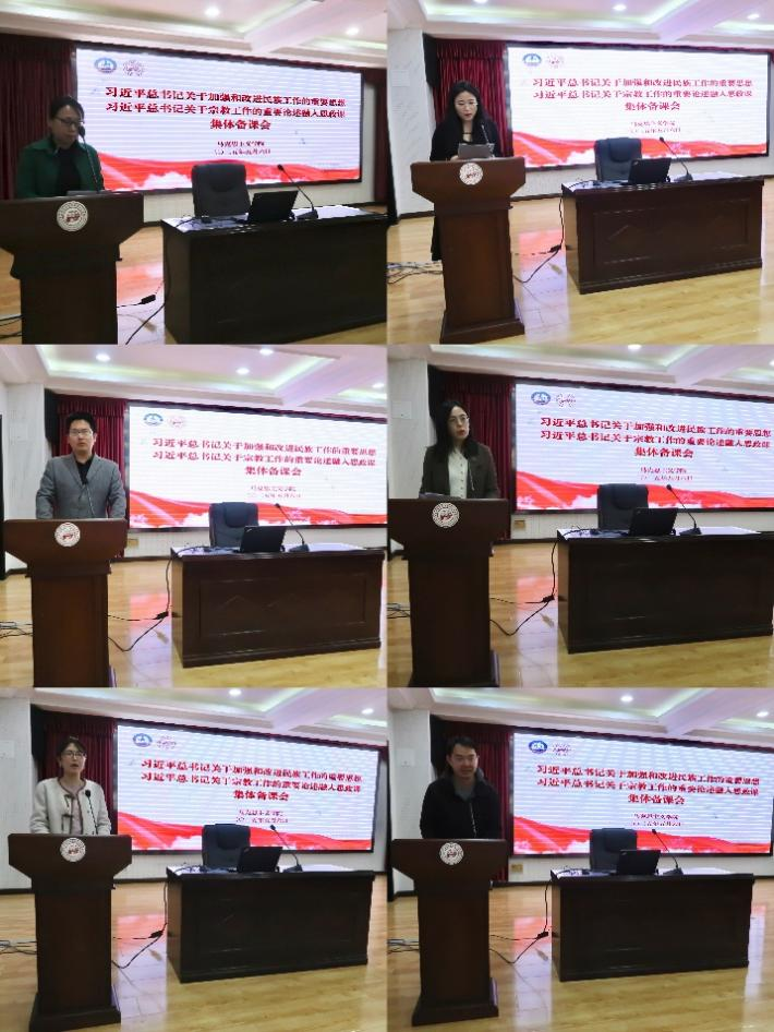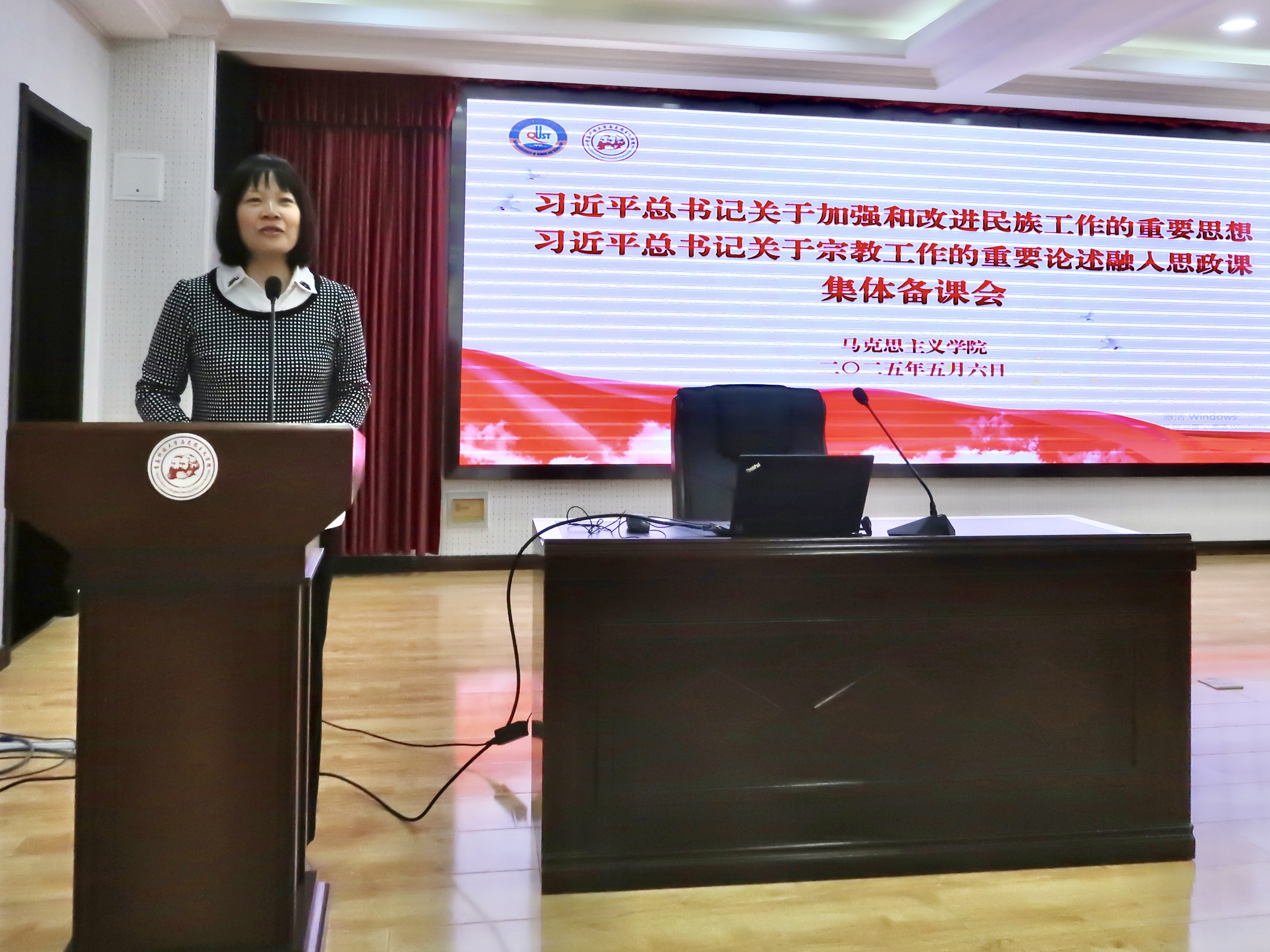 为全面贯彻落实习近平总书记关于加强和改进民族工作的重要思想和关于宗教工作的重要论述,推进新时代思政课改革创新,5月6日下午,谈球吧于学术报告厅开展习近平总书记关于加强和改进民族工作的重要思想和关于宗教工作的重要论述融入思政课集体备课会。谈球吧网页版登录入口党委常委、统战部部长秦姣出席活动,会议由马克思主义公司党总支书记李真主持,公司全体师生参加此次会议。