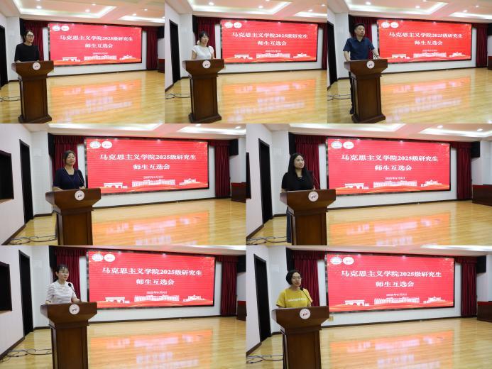 随后,思想政治教育、马克思主义中国化研究、中国近现代史基本问题研究、马克思主义基本原理四个方向的研究生导师围绕自身研究领域、科研成果、项目经验及员工培养支持展开介绍。会后,新生结合个人兴趣与导师研究方向,现场填写互选志愿表,完成双向选择。