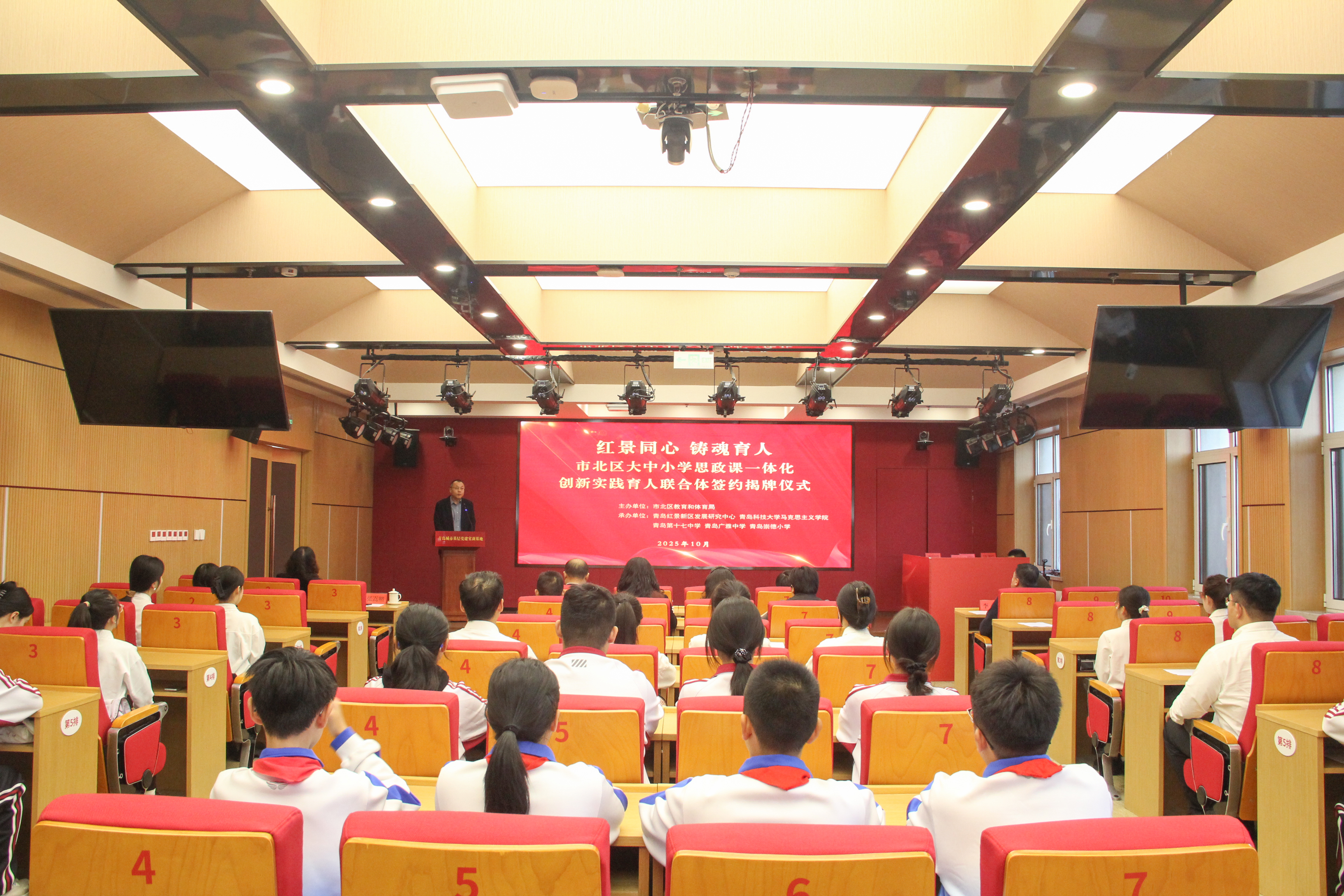 10月21日下午,“红景同心 铸魂育人”市北区大中小学思政课一体化创新实践育人联合体签约揭牌仪式在红景新区发展研究中心正式举行。青岛市市北区人大常委会一级调研员、青岛城市基层党建实训基地管委会副主任杨健,谈球吧网页版登录入口马克思主义公司党总支书记李卉,青岛市市北区教育和体育局党组成员、副局长翟春燕,青岛市市北区委党史研究中心主任、青岛城市基层党建实训基地管委会委员杜选英,谈球吧副经理王建美,青岛红景新区发展研究中心副主任张嵩照,青岛融汇集团人才板块总经理李宾,谈球吧副教授戴雪丽,青岛第十七中学副董事长沈巧妮,青岛广雅中学党支部副书记马新卫,青岛崇德小学党支部书记、董事长张欣出席仪式。
