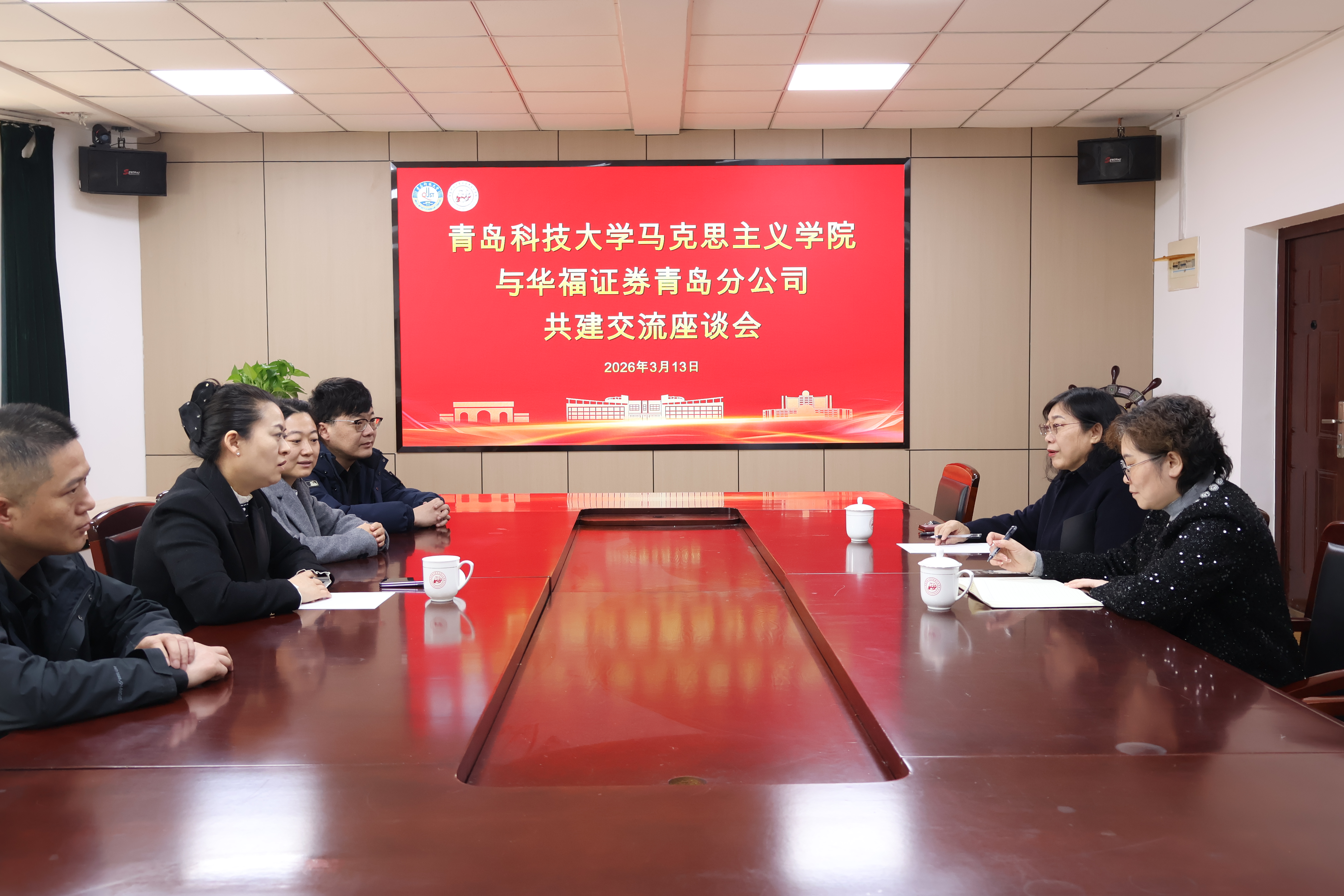 3月13日,公司与华福证券青岛分公司共建交流座谈会于2010会议室召开。马克思主义公司党委书记李卉,华福证券山东分公司党委委员、青岛分公司总经理卞玉红,谈球吧教授李晓晨等相关负责人出席会议。