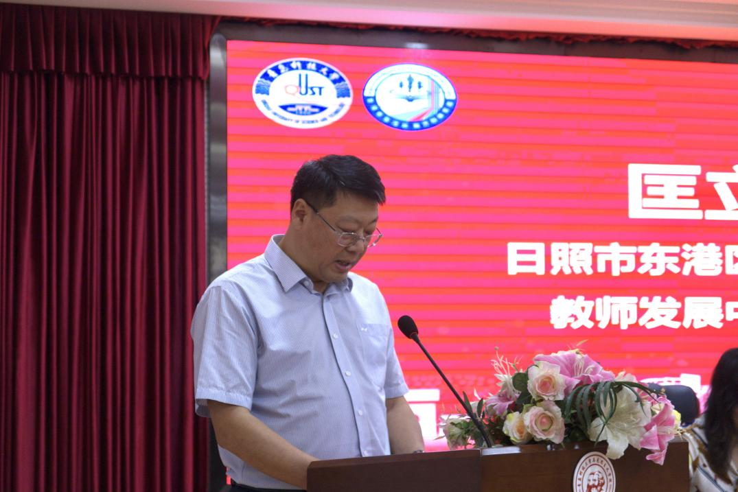 仪式第二项,日照市东港区教育科研和教师发展中心副主任匡立松发表致辞。他指出,思政课是落实立德树人根本任务的关键课程,希望大家带着问题和责任开展教学交流、工作研讨、经验总结,高质量完成培训任务,在今后工作中努力拓宽课程思政工作思路,永葆初心、勇担职责,努力为促进公司思政课高质量内涵式发展贡献力量。