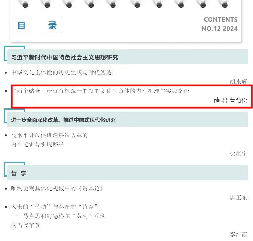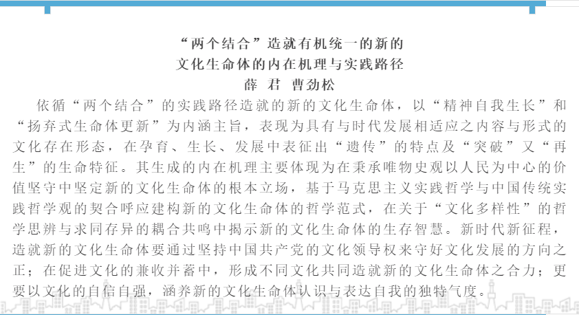 公司薛君老师撰写的学术论文《“两个结合”造就有机统一的新的文化生命体的内在机理与实践路径》在核心期刊《南京社会科学》2024年第12期刊发表,《南京社会科学》创刊于1990年,是由中共南京市委宣传部主管,南京市社会科学界联合会、南京市社会科公司主办的综合性社科学术月刊,位列CSSCI来源期刊的前20%。文章强调新时代新征程,造就新的文化生命体要通过坚持中国共产党的文化领导权来守好文化发展的方向之正;在促进文化的兼收并蓄中,形成不同文化共同造就新的文化生命体之合力;更要以文化的自信自强,涵养新的文化生命体认识与表达自我的独特气度。近年来,公司紧紧围绕团队建设的重点方向和突出问题开展学术研究,高水平期刊论文的数量、质量得到显著提升。