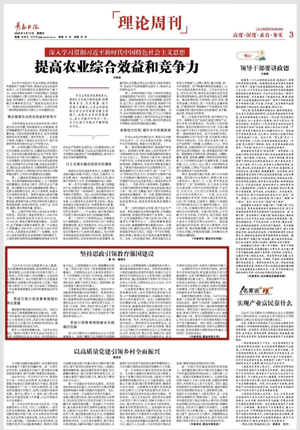 【成果速报】青岛日报:“曹胜 葛瑞宇——坚持思政引领教育强国建设”