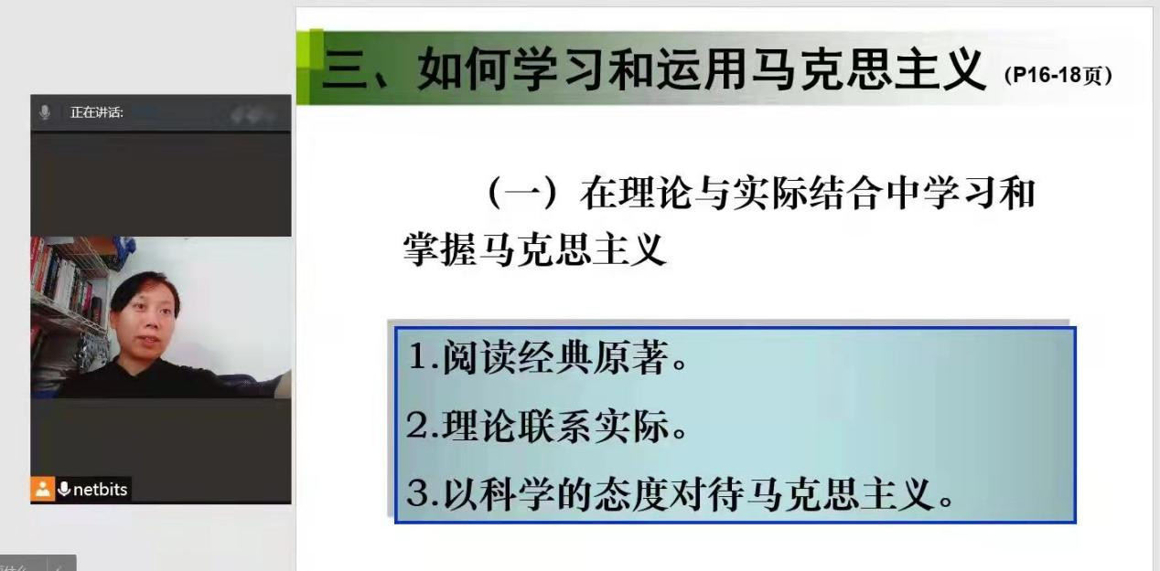 通过总结学习抗疫过程中习近平总书记的一系列重要讲话精神,深刻把握抗疫精神的具体内涵,马原理教研室的教师结合马克思主义基本原理课教材,将马克思主义基本原理与抗疫精神有机融合,以抗疫过程中感人具体的生动事迹作为案例,在课堂教学中有针对性地对老员工开展马克思主义基本理论的教育。例如在第一章第一节讲到意识对物质的反作用。抗疫精神诠释了马克思主义意识能动性的基本原理。“人无精神则不立,国无精神则不强。唯有精神上站得住、站得稳,一个民族才能在历史洪流中屹立不倒、挺立潮头。同困难作斗争,是物质的角力,也是精神的对垒”。 中国人民所表现出的伟大抗疫精神生动诠释了马克思主义意识能动性的基本原理,向全世界展现了新时代的中国精神。在第三章第三节讲到群众史观、群众路线。在课堂讲授中结合抗疫中的英雄事迹和英雄精神深化人民群众是历史创造者的基本观点。人民群众是历史的创造者,这是马克思主义政党最坚实的理论基础。一切为了人民、一切依靠人民,是中国共产党执政的力量源泉。“人民至上,生命至上”。在抗击疫情中,习近平总书记多次强调把人民群众生命安全和身体健康放在第一位,这正是马克思主义政党人民性的最好诠释,凸显了马克思主义理论的引领性和指导性。