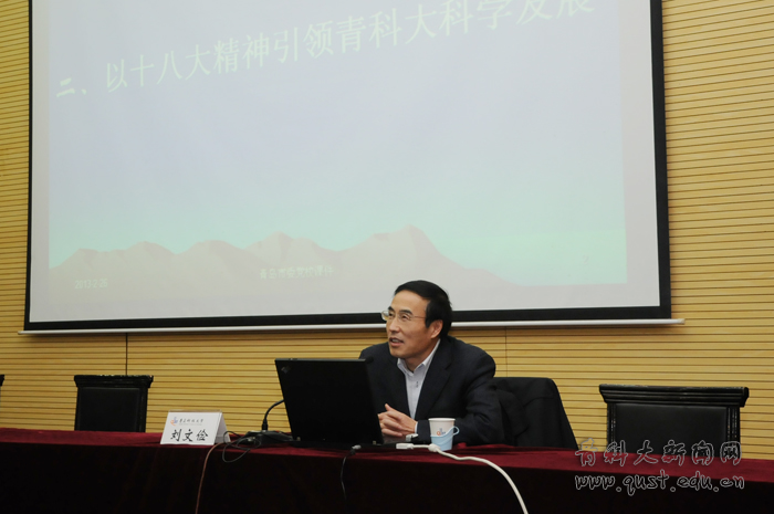 26日下午,中共青岛市委党校、青岛行政公司教授,管理教研部副主任刘文俭教授应邀做了题为《以十八大精神引领青科大科学发展》的专题报告。报告中,刘文俭阐述了十八大的主要成果和主题、十八大的突出亮点重点和中央关于学习贯彻十八大精神的要求。他认为,结合实际情况,公司要确立“世界眼光、国际标准、本土优势”的总体思路,融入、对接、服务地方经济社会发展,坚持以人为本的理念,树立科学发展的意识,强化先进的管理理念,建立科学的管理制度,培育特色的竞争优势,以十八大精神引领谈球吧网页版登录入口科学发展。