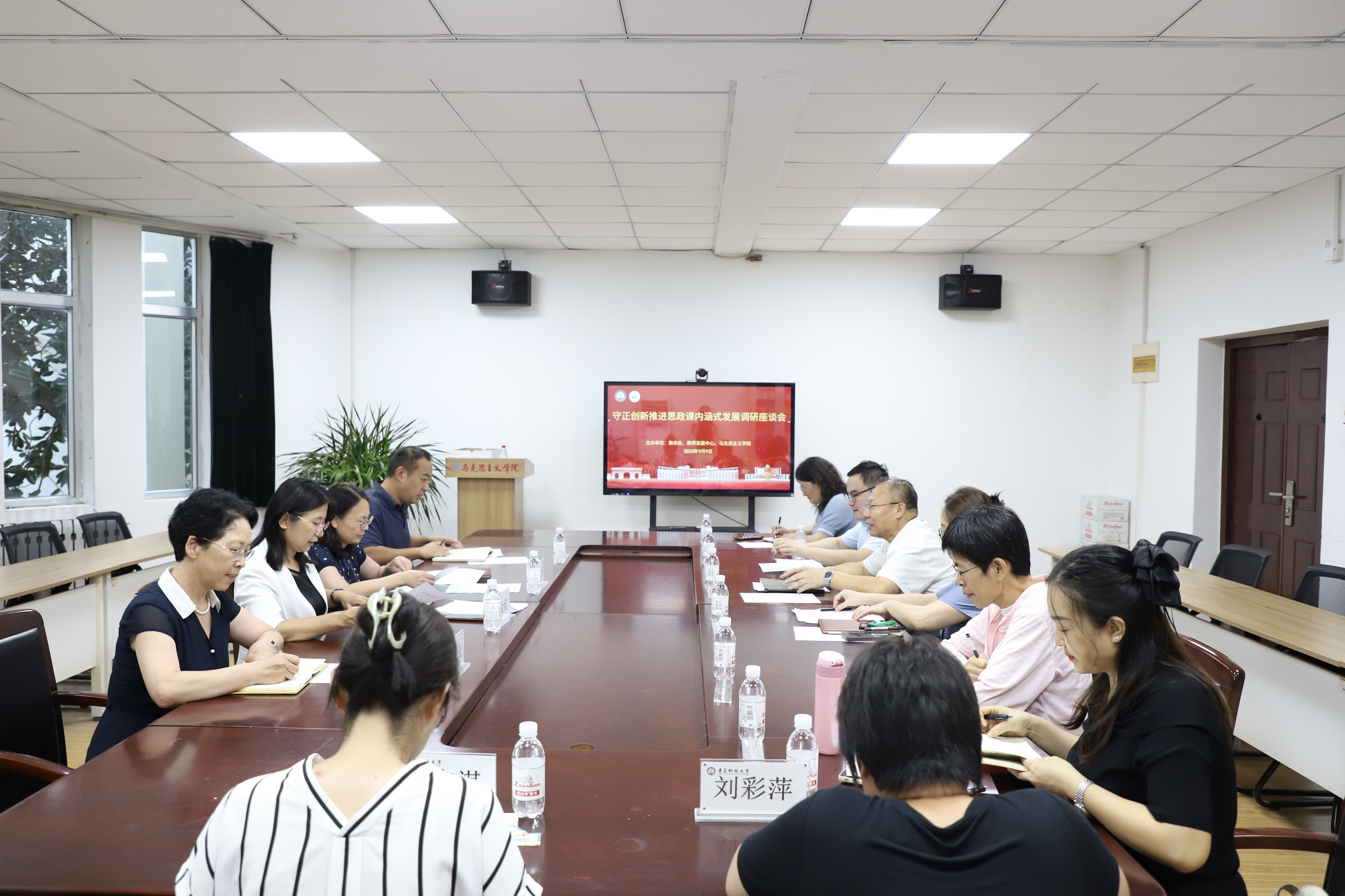 9月9日,“守正创新推进思政课内涵式发展”调研座谈会在2010会议室召开。谈球吧网页版登录入口副董事长李金红,教务处处长、教学质量管理办公室(教师教学发展中心)主任马翠萍,教学质量管理办公室(教师教学发展中心)副主任王许云,教师发展中心教师教学发展科科长,公司党政领导班子、思政课教师代表参加会议。会议教学处、教学质量管理办公室(教师教学发展中心)、谈球吧联合举办,马翠萍主持。