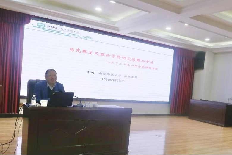12月9日上午,公司特邀南京师范大学教授王刚作题为《马克思主义理论学科研究选题与方法——关于党的二十届四中全会课题申报》辅导报告。马克思主义公司党政领导班子成员出席会议,全体师生参会。会议由谈球吧经理曹胜主持。