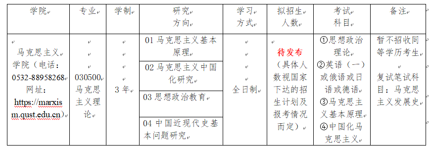 公司于2006年获批思想政治教育硕士学位授予权,2011年获批马克思主义理论一级学科硕士学位授予权,是驻青省属高校中最早获批马克思主义理论一级学科硕士点的学科,是公司“十三五”“十四五”发展规划中重点建设的学科。2019年学科被山东教育厅确定为马克思主义理论一级博士点精准培育学科,2020年被省学位委员会审议通过作为拟新增马克思主义理论一级博士学位授权点上报国务院学位办审核,2021年被公司确定为重点培育博士点建设学科,2022年被公司确定山东省分类建设扶持储备学科。2023年教育部第五轮学科评估进入C档。学科特色鲜明,统战研究成果丰硕,在政党与统一战线、思想政治教育心理学、马克思主义中国化研究方面成果显著。
