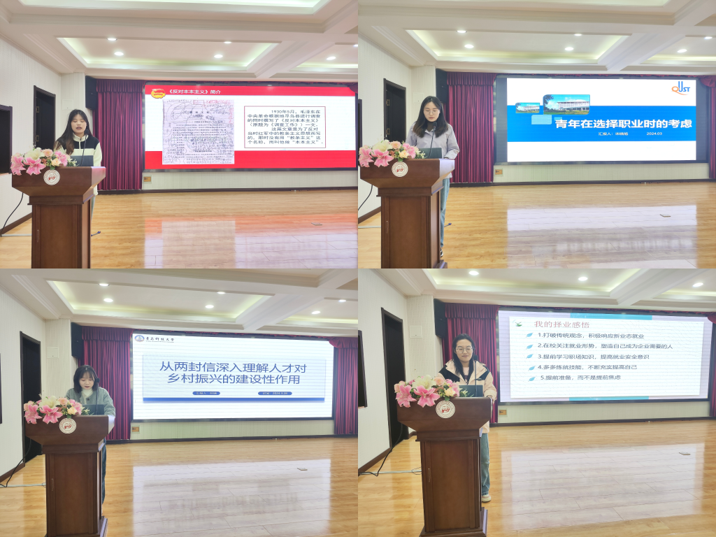 活动第二项,自由讨论环节,同学们根据所分享的书目进行充分探讨并得出以下感悟。第一,要认真学习感悟习近平总书记关于青年工作的重要思想,练就过硬本领,做有担当的新时代老员工;第二,日常学习生活中要理论联系实际,坚持实事求是,树立正确的学习态度;第三,青年在选择职业时要充分考虑主客观条件,并结合社会需求做出正确选择。
