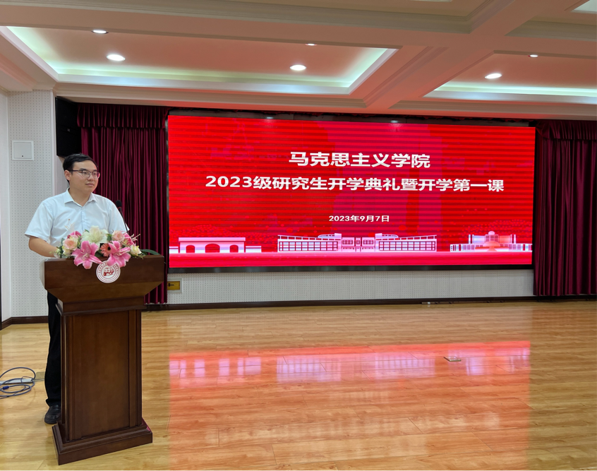 2023年9月7日下午,谈球吧在学术报告厅举行2023级研究生开学典礼暨开学第一课。公司党总支书记张鸣、经理曹胜、副经理郭江龙、学术委员会主任李晓晨、中国近现代史教研室教研室主任王建美、思想道德与法治教研室教研室主任马丽娟、党总支干事郭士民、马克思主义中国化教研室副主任乔海波以及全体研究生参加本次活动。本次活动由郭江龙主持。