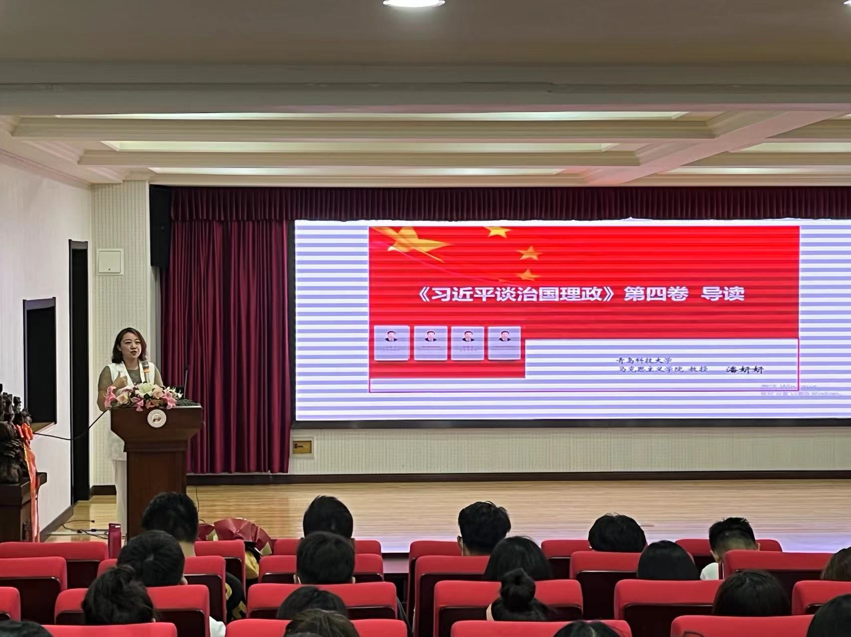 最后,潘妍妍教授为全体研究生作《习近平谈治国理政》第四卷导读的学术报告,梳理了《习近平谈治国理政》一到四卷的逻辑脉络,详细介绍了《习近平谈治国理政》第四卷的总体内容。