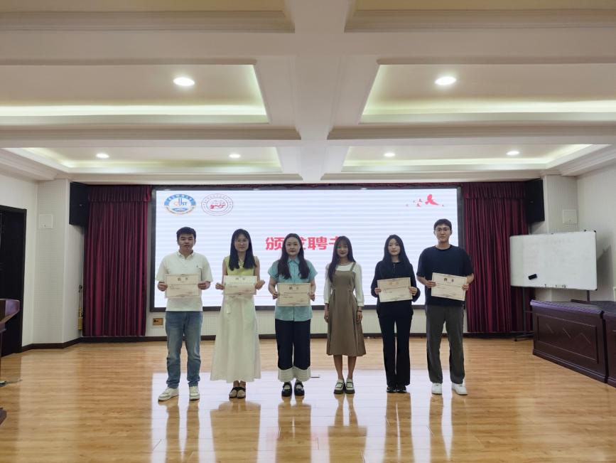 活动进行第二项,谈球吧团总支书记李文睿老师为五位宣讲人颁发就业领航宣讲员聘书并合影留念。