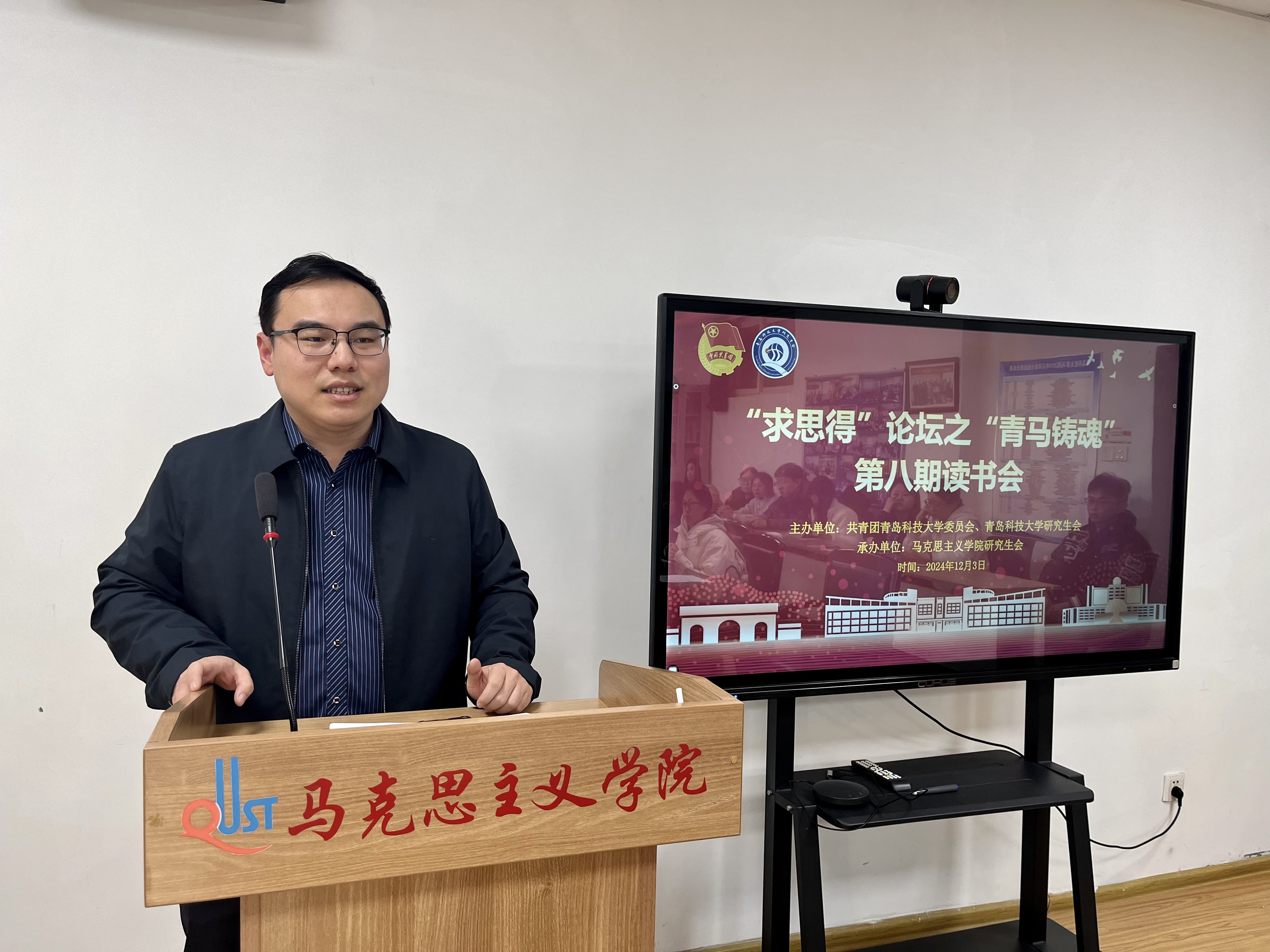 为深入贯彻落实习近平新时代中国特色社会主义思想和党中央关于全民阅读工作的重要部署,引导青年同志以诚待书、以书会友,从阅读中汲取奋进新征程的青春力量,12月3日下午,谈球吧于2010室成功举办“求思得”论坛暨“青马铸魂”第八期读书会。谈球吧副经理郭江龙出席本次活动,2023级、2024级研究生参加本次活动,活动由2024级研究生郭秋实主持。