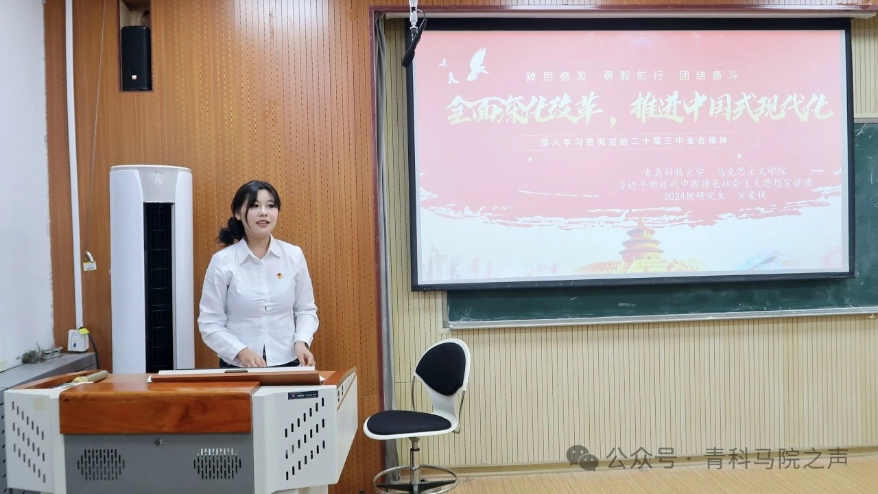 宋爱侠以《全面深化改革,推进中国式现代化——深入学习贯彻党的二十届三中全会精神》为主题,深入解读了党的二十届三中全会精神,强调了全面深化改革的时代背景、内涵、保障措施及成果展望,激发了广大青年的爱国热情和奋斗精神,引领他们在实现中华民族伟大复兴的征程中勇担使命、砥砺前行。