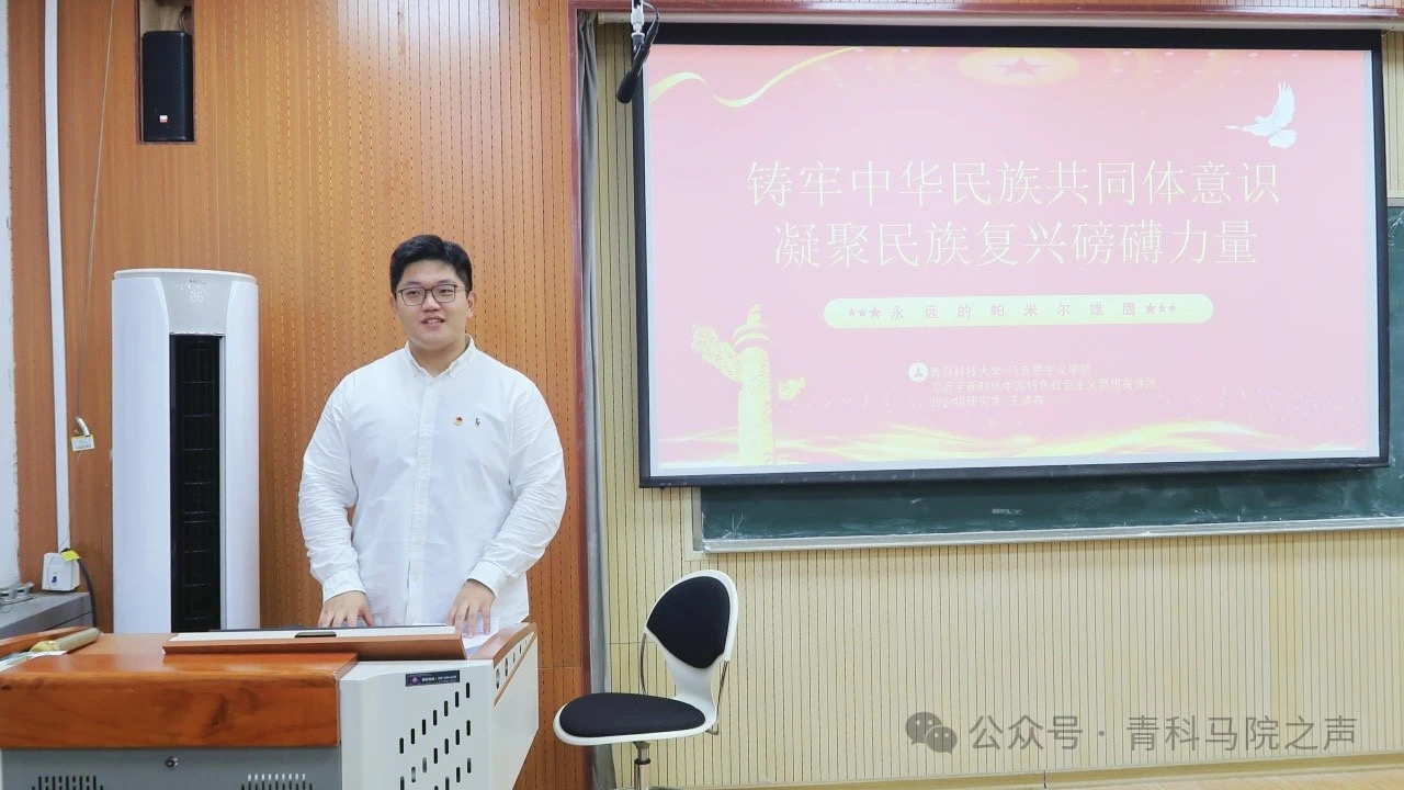 王靖森以《铸牢中华民族共同体意识,凝聚民族复兴磅礴力量》为主题,讲述了共产党员拉齐尼·巴依卡的英雄故事,深刻阐述了中华民族共同体意识的内涵与重要性,他呼吁广大青年要继承和发扬拉齐尼一家三代戍边的忠诚奉献精神,积极投身民族复兴的伟大事业中,为实现中华民族伟大复兴的中国梦贡献自己的力量。