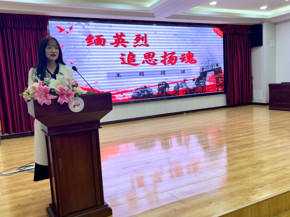 4月2日晚,李文睿在学术报告厅讲授“缅英烈,追思杨魂”主题团课,她强调我们要深入学习习近平总书记关于缅怀革命先烈的重要论述,缅怀革命先烈,厚植家国情怀。她向我们讲述了了李大钊、夏明汉、陈延年等马克思主义者为我们国家所作出的贡献,并告诫我们要坚持走马克思主义道路,坚信对马克思主义的信仰。最后,她强调不管时代如何变化,我们都要铭记革命先烈的贡献,传承革命精神,努力建设国家,为国家的发展添砖加瓦。