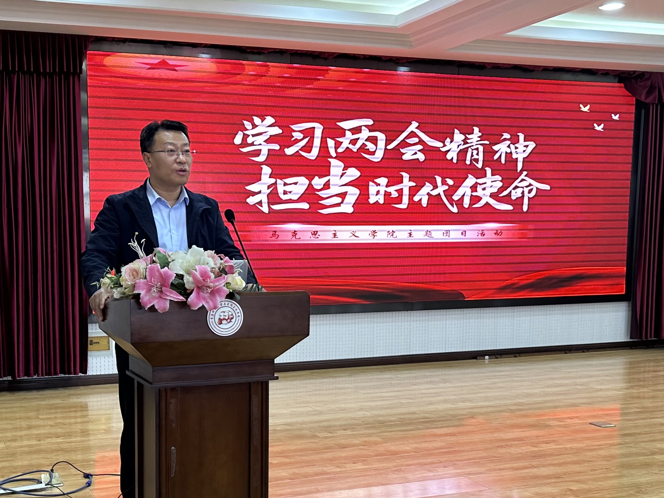 为了深入学习贯彻落实全国两会精神,全面领会其深刻内涵及精神实质,教育引导团员青年提高政治站位,强化实干担当。3月19日下午,谈球吧团总支于公司报告厅开展“学习两会精神,担当时代使命”主题团日活动。谈球吧领导班子以及2022级、2023级团支部全体团员参加了此次活动。本次活动由谈球吧团总支委员司若锦主持。
