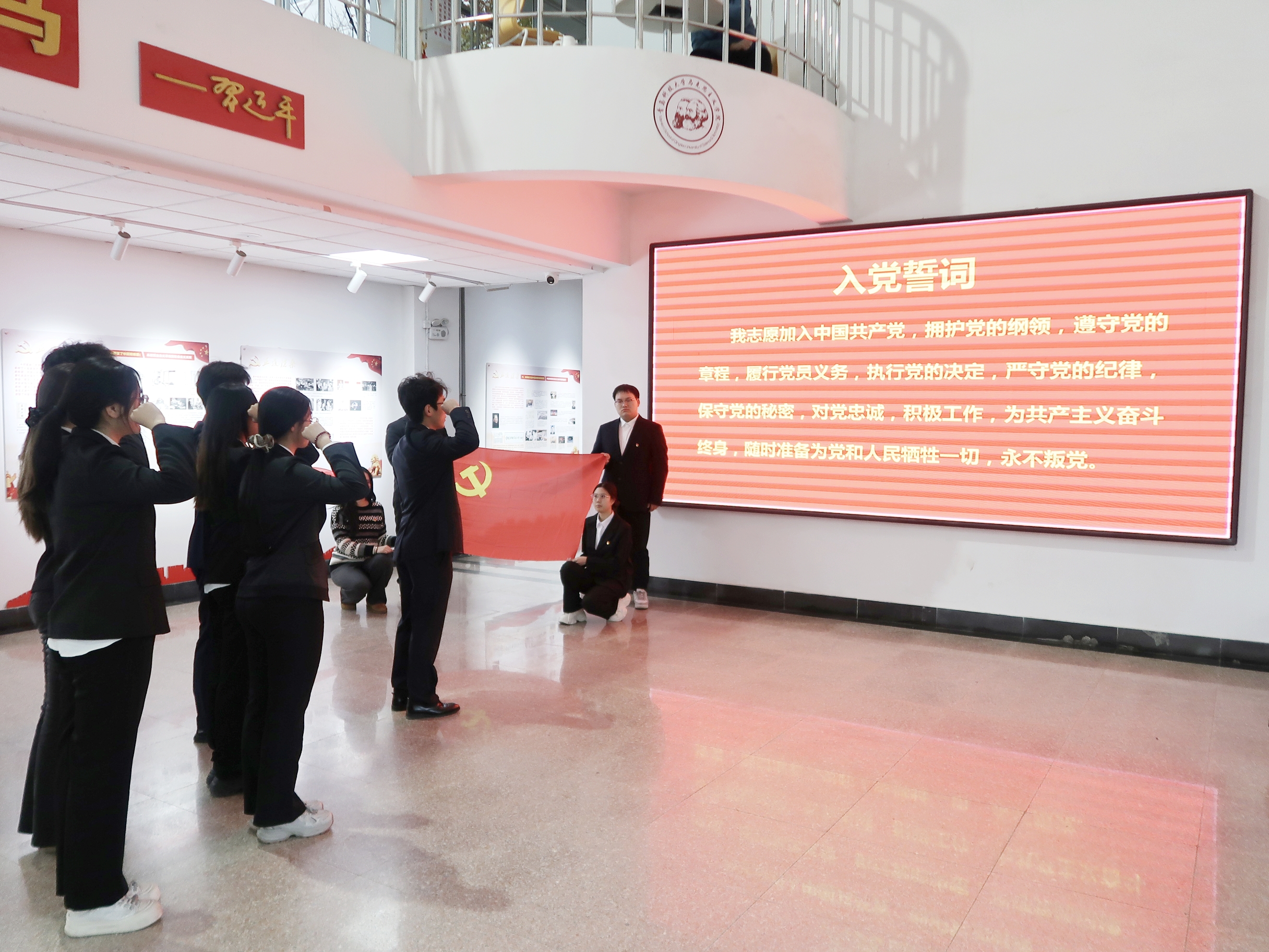 参观学习环节结束后,活动进入预备党员入党宣誓仪式。在中德科技公司员工党支部负责人的带领下,全体预备党员面向鲜红的党旗,举起右拳,庄严宣誓。