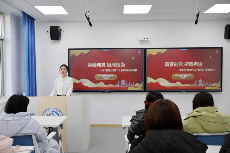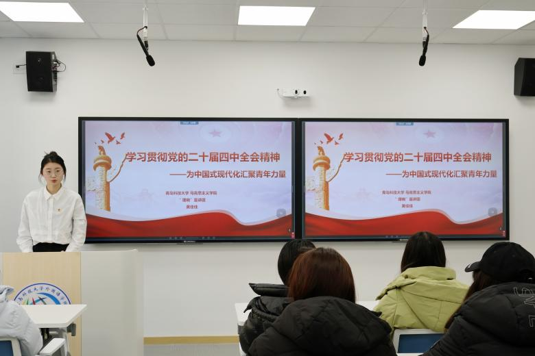 “理响”宣讲团成员李睿姿、黄佳佳作学习贯彻党的二十届四中全会精神主题宣讲。李睿姿以党的二十届四中全会的重大意义为切入口,聚焦会议的核心内容,为大家系统解读《“十五五”规划建议》所擘画的发展蓝图,并由此引申出新时代青年的责任。黄佳佳回顾了“十四五”时期我国取得的重大成就,深入解读“十五五”时期我国经济社会发展的指导思想、主要目标与重大原则,鼓励同学们以历史主动精神迎接挑战,在中国式现代化进程中争当先锋。