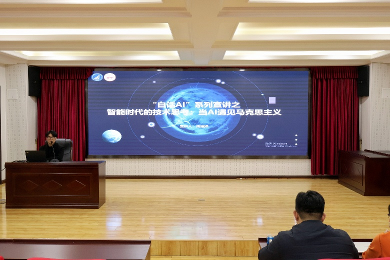 数据科学公司研究生讲师团成员柴皓泽、尚文琦分别以《“白话AI”系列宣讲之智能时代的思考:当AI遇见马克思主义》《“数智”宣讲团—AI应用》为题,以通俗的语言拆解AI技术原理,通过探讨如何认识AI、理解AI、看待AI,揭示了如何创新性运用马克思主义技术批判理论审视智能时代发展现实。从实践层面分享AI在数据处理、服务社会等领域的应用场景,结合科研经历讲解技术落地的关键问题,通过具体大模型分享来阐述人工智能如何赋能思想政治教育,推动理论与实践的结合。