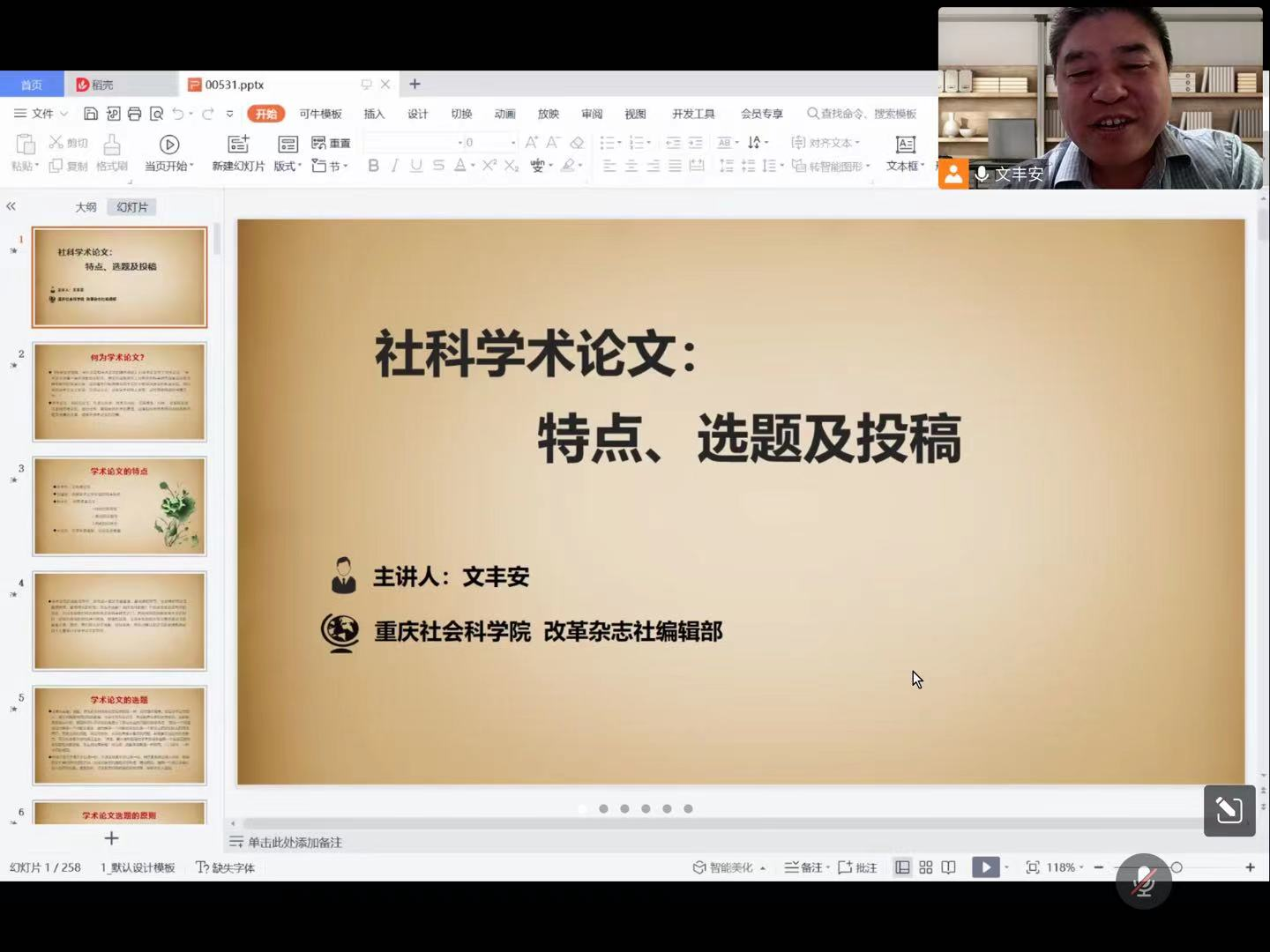 【学术论坛】重庆社会科公司文丰安教授作“新时代人文社科学术论文特点和选题”学术报告