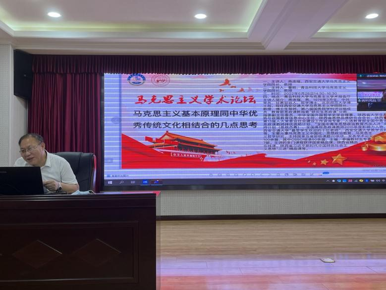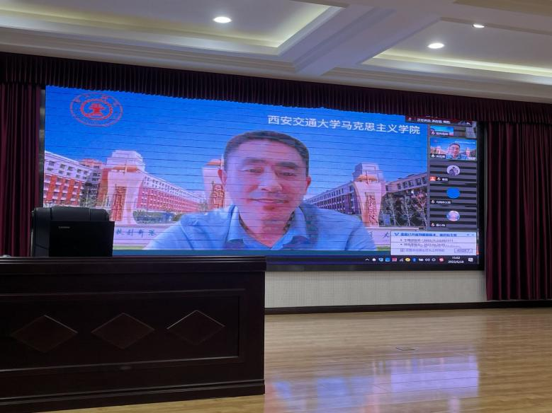 为深入学习领会习近平总书记在庆祝中国共产党成立100周年大会上的重要讲话精神,推进马克思主义中国化时代化,深刻理解中华优秀传统文化,6月28日下午,谈球吧邀请西安交通大学谈球吧经理、第八届国务院学科评议组成员、教育部思政课教指委“研究生思政课”分教指委副主任委员、中华全国外国哲学史学会理事、陕西省老员工形势与政策教育信息中心主任、陕西省思想品德研究会会长、陕西省第13届人大常委会社会建设工作咨询专家燕连福教授以“马克思主义基本原理同中华优秀传统文化相结合的几点思考”为题作专题报告。马克思主义公司党总支书记张鸣、经理曹胜、副经理曲慧敏及全体师生参加本次活动。本次活动是马克思主义公司党总支理论学习中心组、教职工政治学习、马克思主义学术论坛系列活动之一。