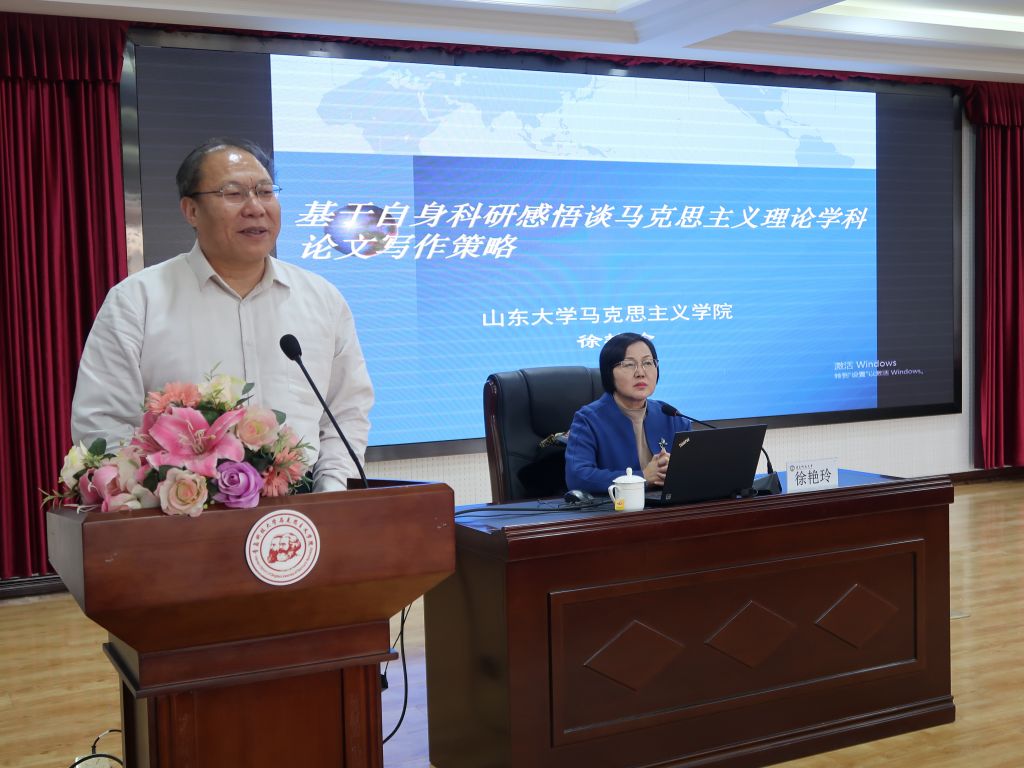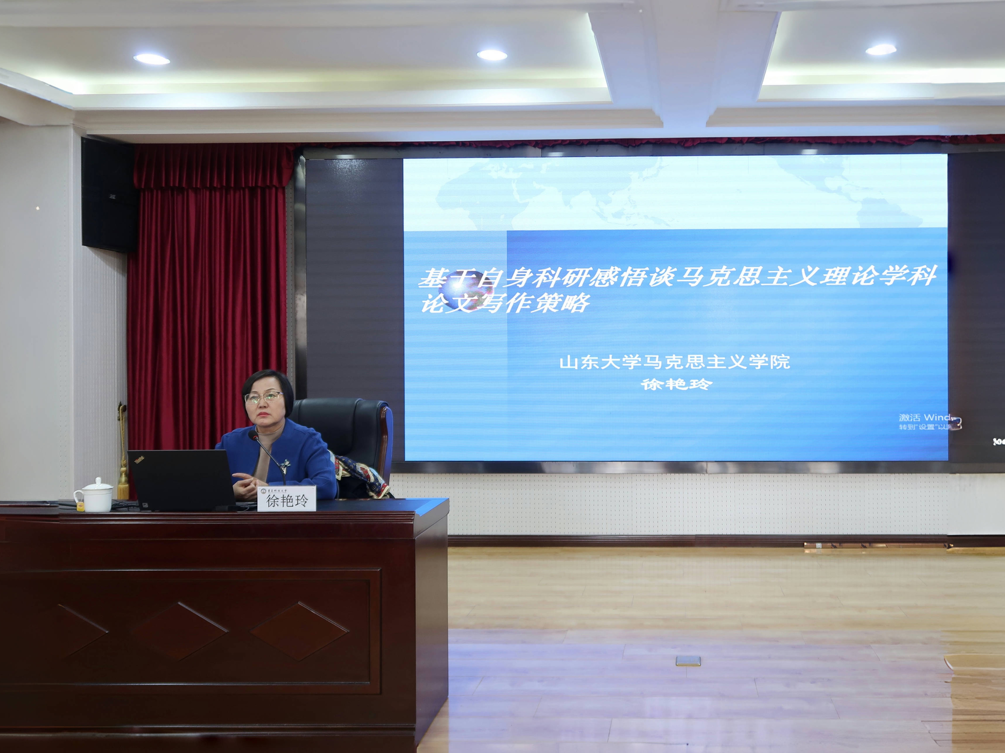 为进一步精准把握国家社科基金项目的申报要点与趋势,提升教师科研项目申报的质量与成功率,12月10日下午,谈球吧于学术报告厅召开国家社科基金项目辅导报告会。公司特邀山东大学马克思主义研究院副经理、国家社科基金重大项目首席专家徐艳玲作“谈马克思主义理论学科论文写作策略”辅导报告。谈球吧全体师生参加此次会议,会议由谈球吧经理曹胜主持。