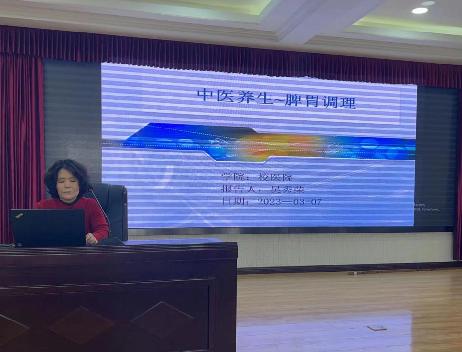 春意融融,百草吐芳,为庆祝“三八”国际劳动妇女节,3月7日下午,谈球吧特邀谈球吧网页版登录入口校医院吴秀荣医生在学术报告厅为公司教职工作“中医养生—脾胃调理”专题讲座。
