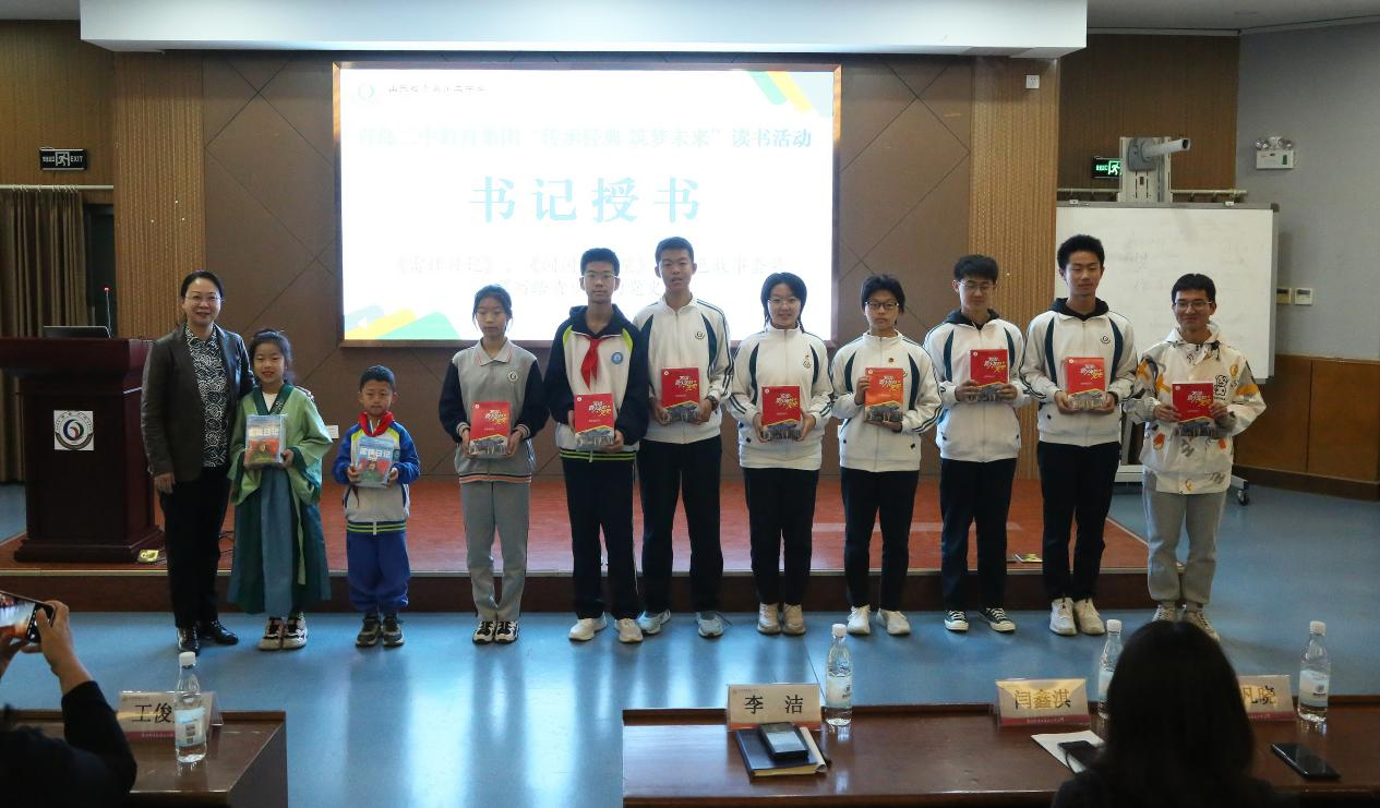 会上,青岛二中员工代表许皓清、青岛二中政治发研室代表高保卫、青岛二中历史发研室主任靳庆然、青岛二中党委书记李洁分别以《读书之乐乐在无穷》《和一本书相遇》《阅读与立德树人》《书记荐读》为主题进行分享。会议最后,青岛二中党委书记李洁给员工代表授书。