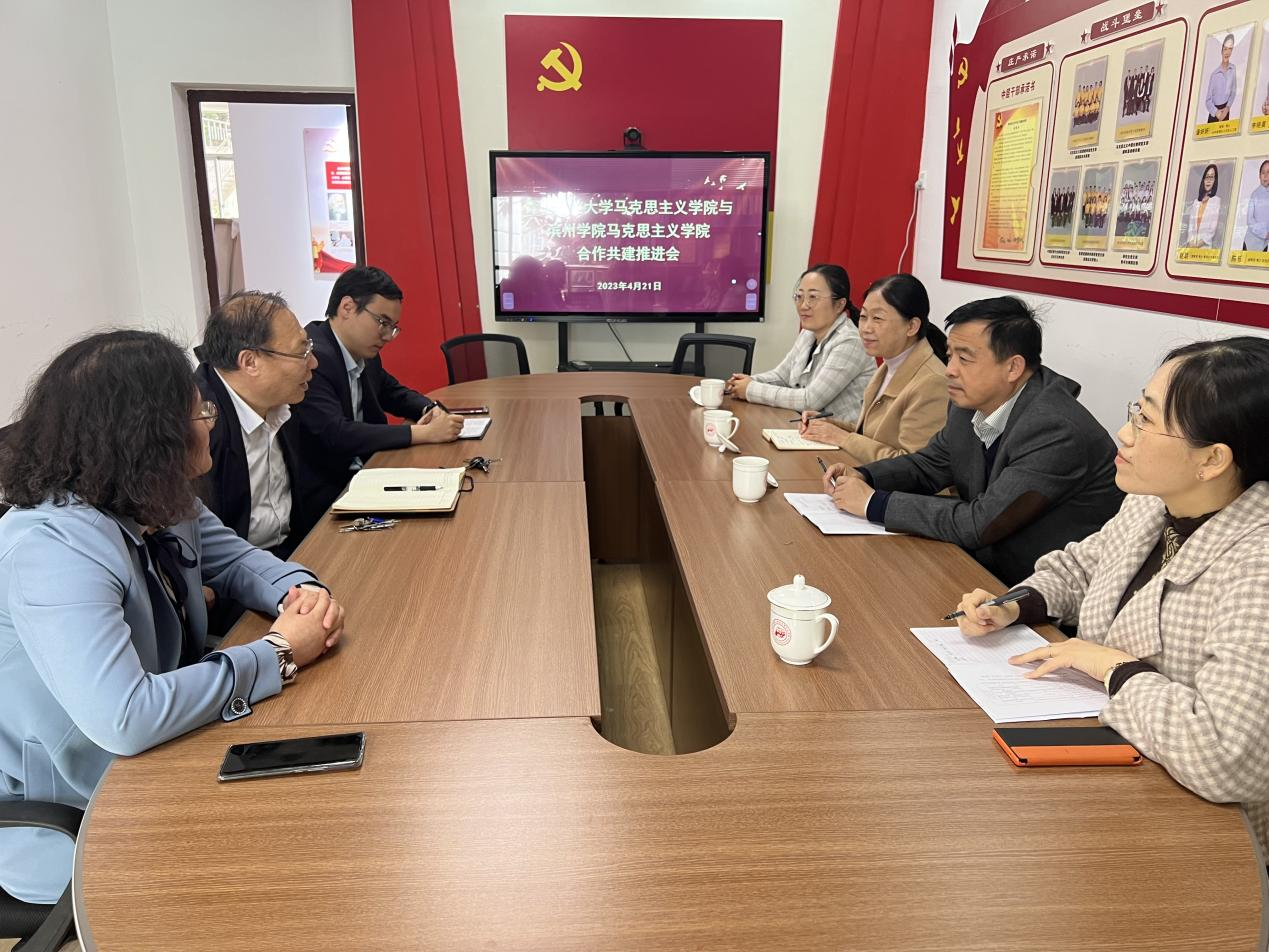4月21日,公司召开公司与滨州公司谈球吧合作共建推进会。滨州公司谈球吧经理傅开梅一行5位领导老师到公司访问交流。经理曹胜,副经理郭江龙,党总支委员、中国近现代史教研室党支部书记兼教研室主任王建美参加了本次会议。