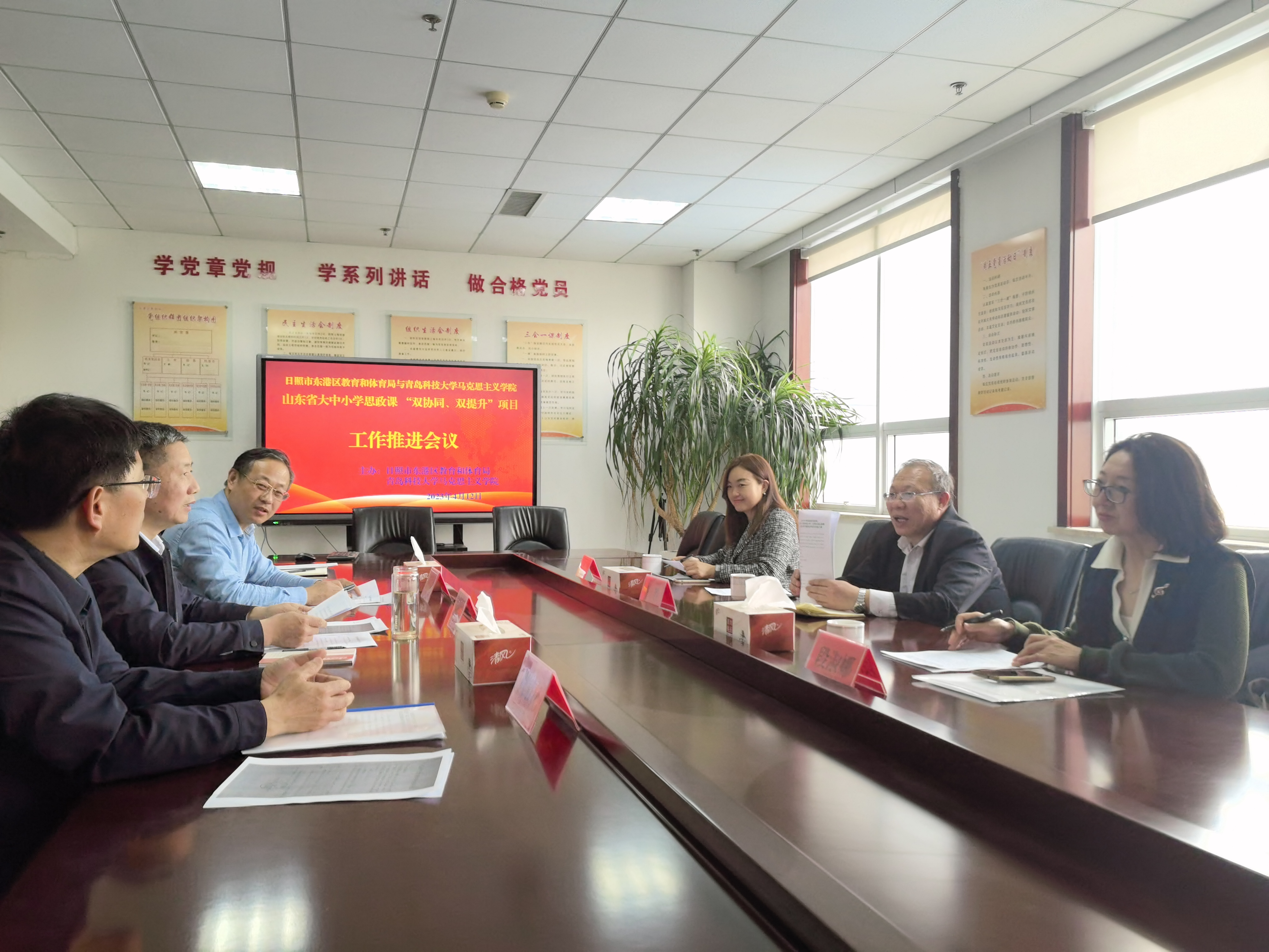 为深入贯彻落实山东省教育厅关于《山东省大中小学思政课“双协同、双提升”项目工作方案》,根据山东省大中小学思政课一体化建设指导中心工作部署,2023年4月12日,公司谈球吧经理曹胜教授、公司办公室主任段淑娜老师、思想道德与法治教研室主任马丽娟副教授赴日照市东港区教育和体育局就相关工作开展举行工作推进会。日照市东港区教体局党组成员潘维增主任、周家友主任和中小学思政课骨干教师代表马峰老师、陈涵老师等参加此次工作推进会。