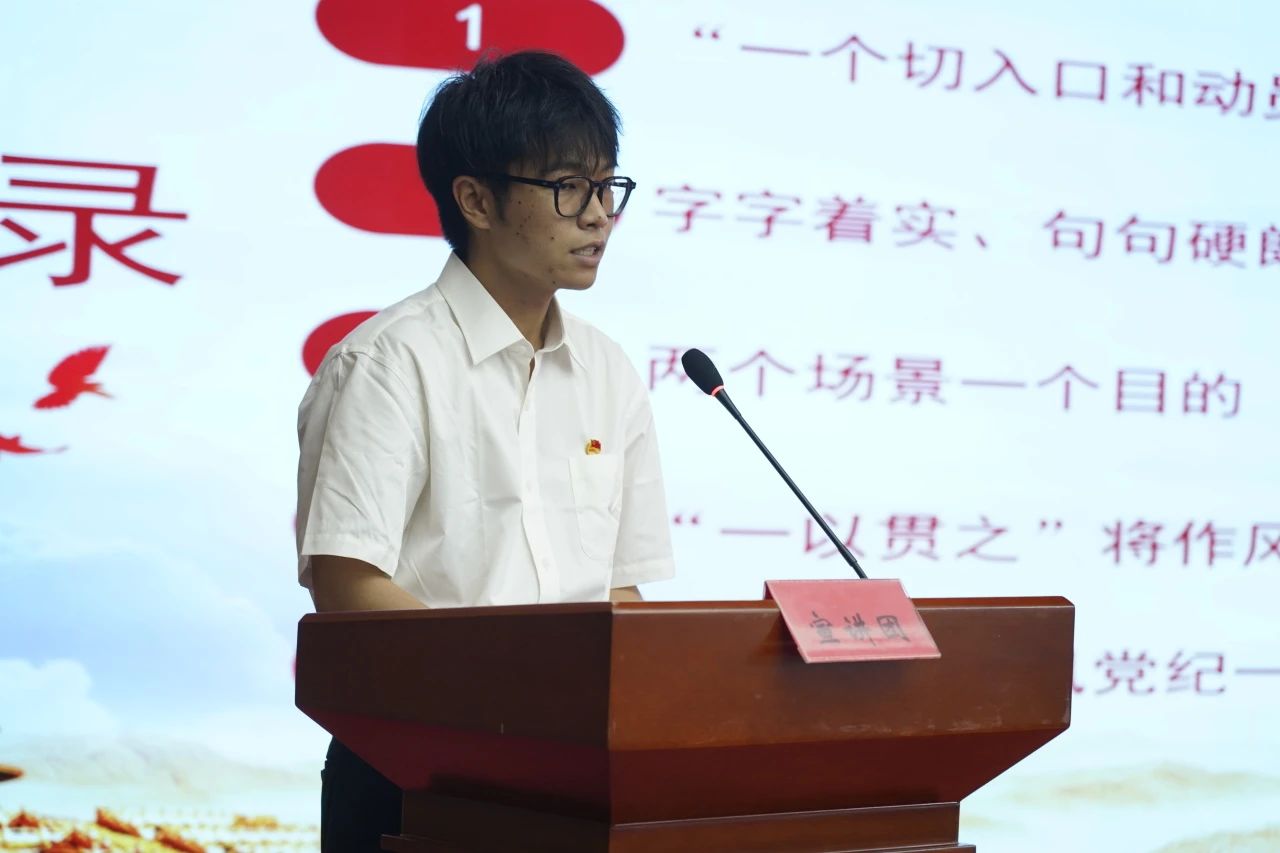 仪式之后,青科大马公司党的创新理论宣讲团成员王靖森、谢云帆、刘知润分别以《铸牢中华民族共同体意识,凝聚民族复兴磅礴力量》《血肉长城:中国人民抗日战争的世界历史意义》《解读中央八项规定精神》为题,进行了一场内涵丰富的精彩宣讲,激励各位党员牢记初心与使命,时刻保持清醒头脑,以实际行动践行优良作风。