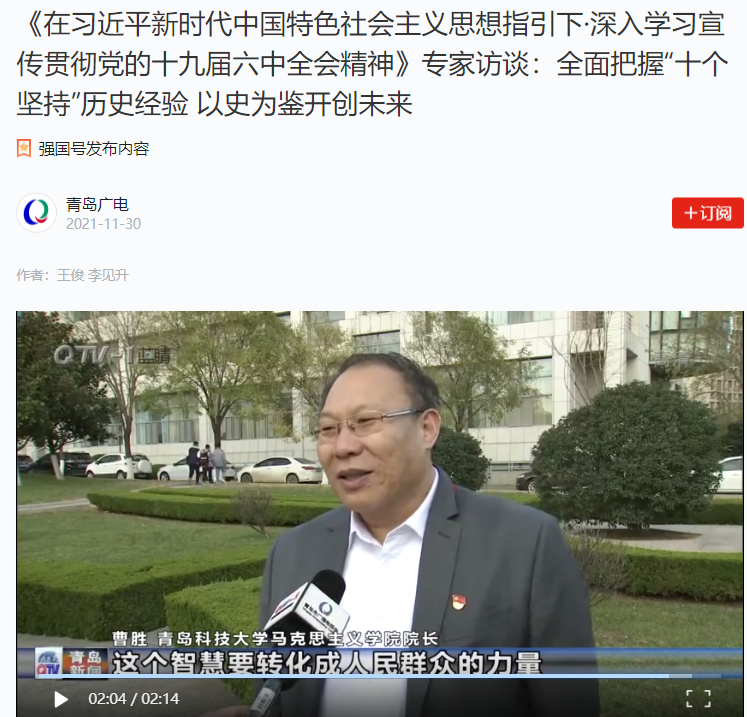 2021年11月30日,谈球吧经理曹胜接受青岛市广播电视台《在习近平新时代中国特色社会主义思想指引下·深入学习宣传贯彻党的十九届六中全会精神》专家访谈采访。