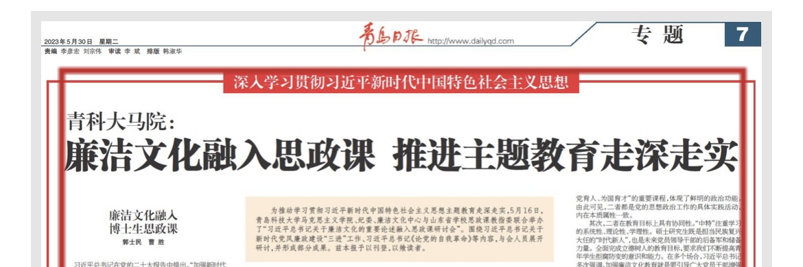 习近平总书记在浙江工作时指出:“要积极推动廉政文化进机关、社区、公司、企业、农村和家庭,促进全社会形成以廉为荣、以贪为耻的良好风尚,努力形成党风政风与社会风气的良性互动局面。”博士研究生是我国高层次人才的重要组成部分,在教学过程中,更需紧扣“廉洁自律”主题,加强新时代青年群体的廉洁文化教育,助力形成全社会崇清尚廉的浓厚氛围。