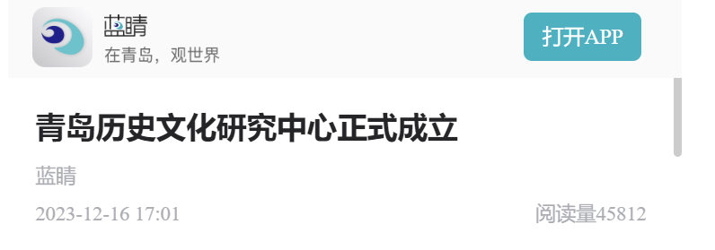 [媒体马院]蓝睛新闻、观海新闻:青岛历史文化研究中心正式成立