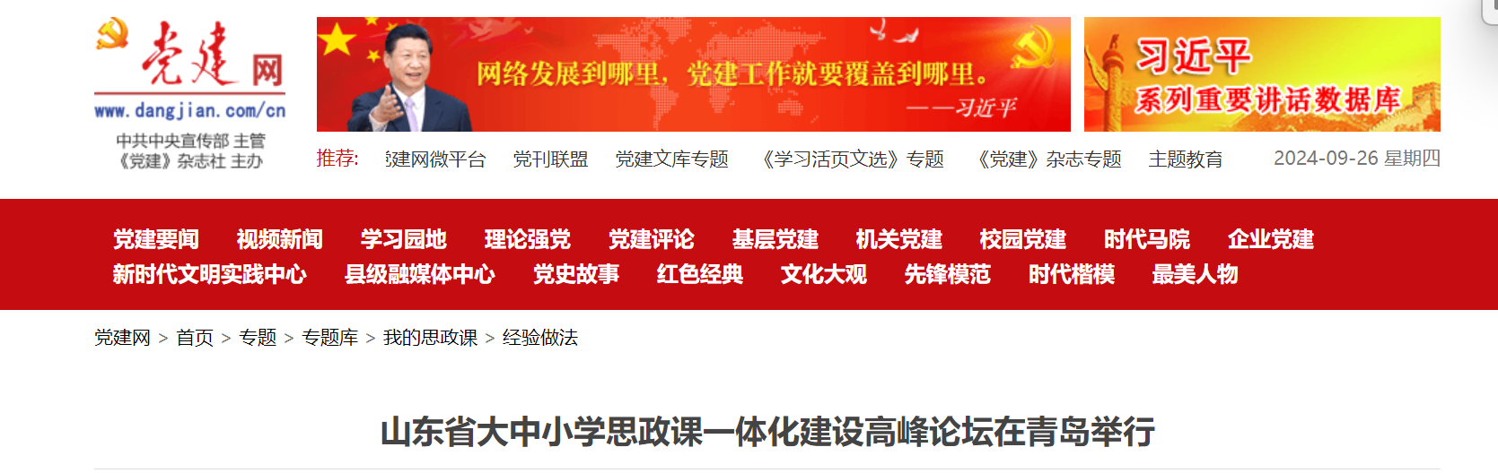 党建网:山东省大中小学思政课一体化建设高峰论坛在青岛举行