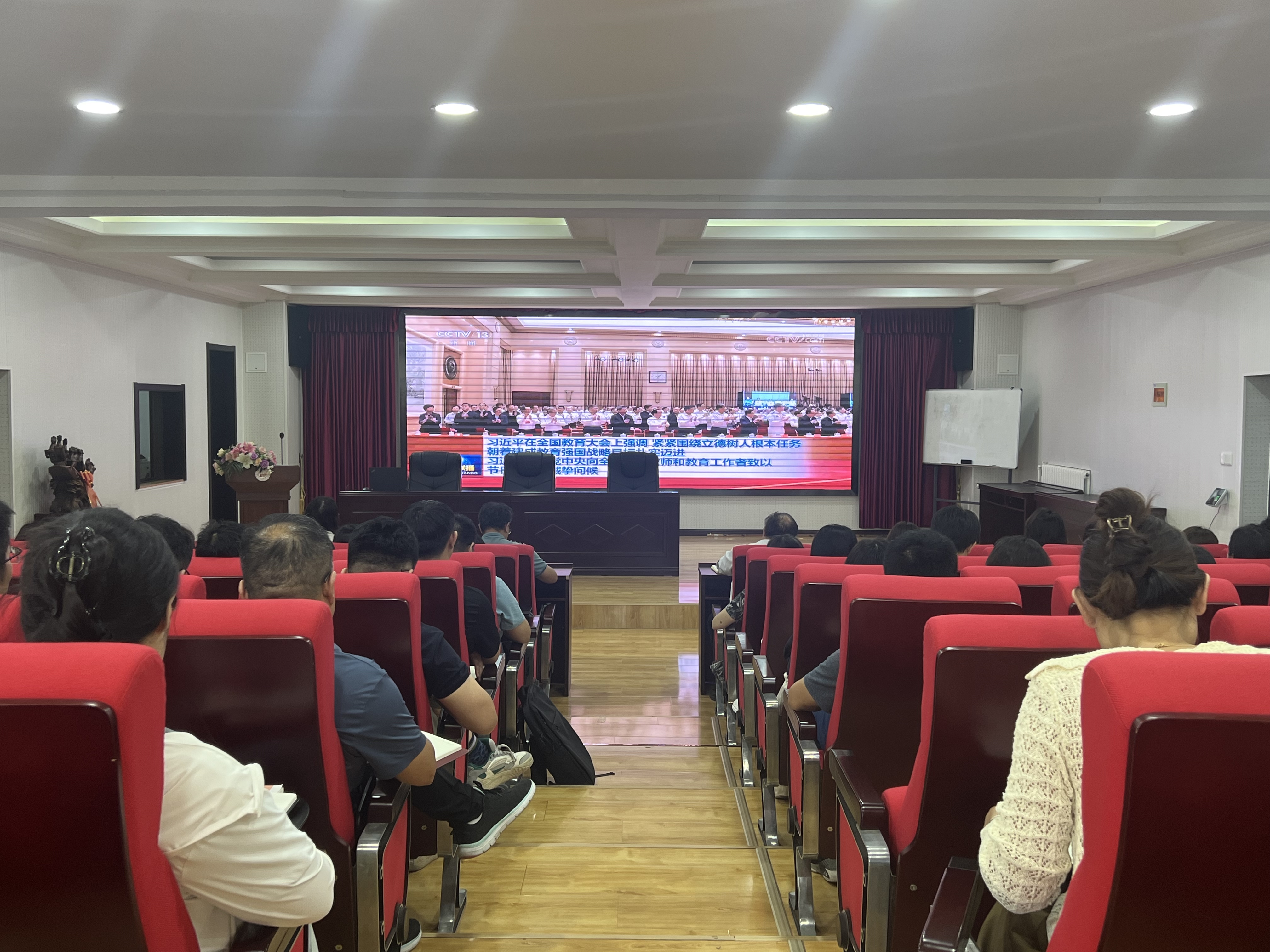 会议伊始,全体人员集体观看习近平总书记在全国教育大会上的讲话视频。习近平总书记在讲话中强调,建成教育强国是近代以来中华民族梦寐以求的美好愿望,是实现以中国式现代化全面推进强国建设、民族复兴伟业的先导任务、坚实基础、战略支撑,要坚持把教育作为国之大计,全面贯彻党的教育方针,加快教育现代化的重大决策,加强高素质专业化教师队伍建设,弘扬教育家精神,推动新时代教育事业取得历史性成就、发生格局性变化,助推教育强国建设迈出坚实步伐。