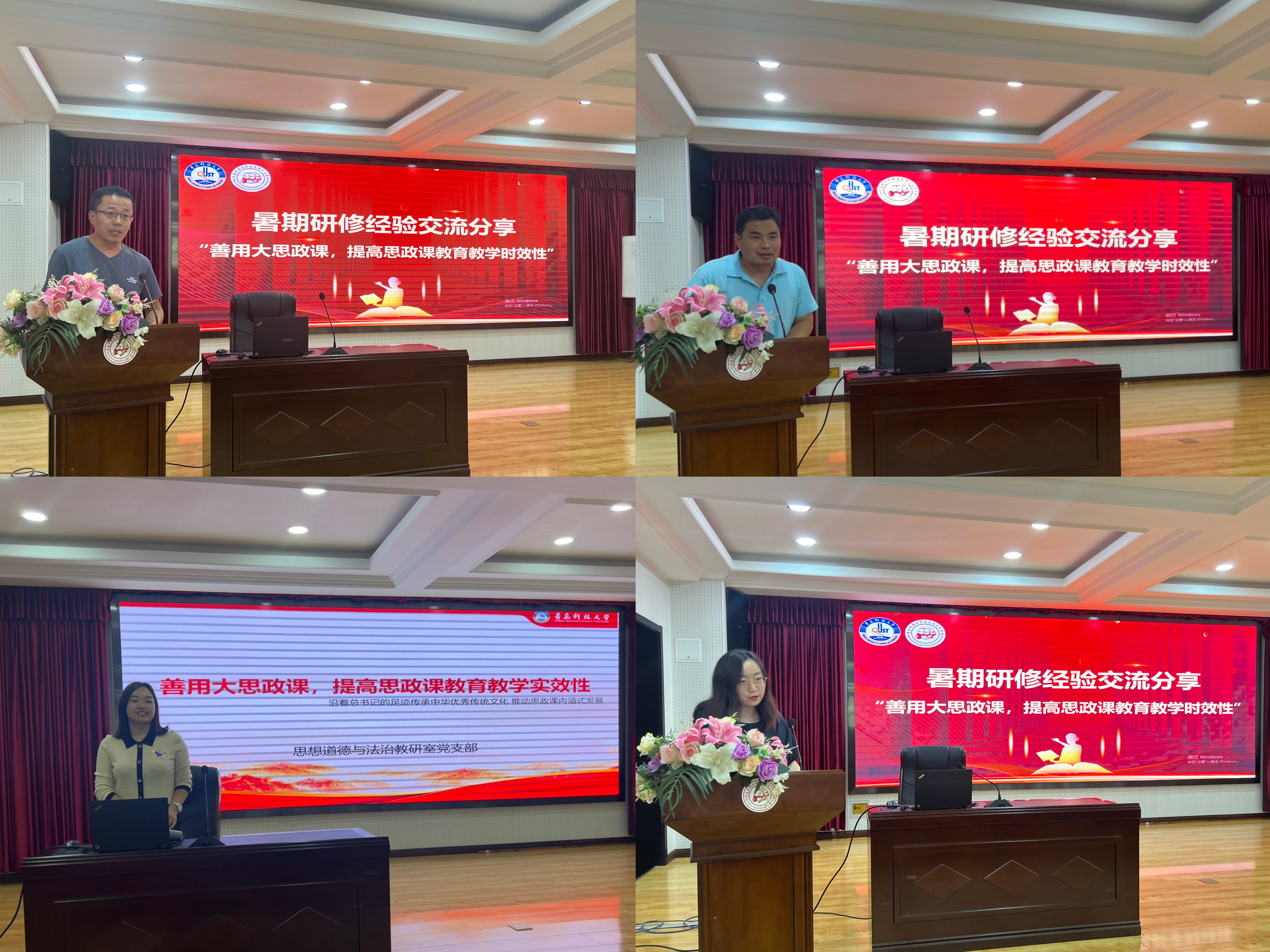 为真正做到“善用大思政课,提高思政课公司产品时效性”,各教研室开展暑期研修经验交流。郭士民老师代表马克思主义基本原理教研室党支部以“在‘行走的思政课’中找寻文化之根、增强文化自信”为题,分享了党支部参观西安当地红色纪念馆,并与延安大学谈球吧同仁进行交流研讨的研修心得。邵长威老师代表马克思主义中国化教研室党支部以“跟随总书记足迹,以‘践’促学提升思政育人质量”为题,分享了党支部学习塞罕坝精神,并与燕山大学谈球吧进行交流探讨的研修心得。杨晓越老师代表中国近现代基本问题研究教研室党支部以“行走中感悟文化魅力,赋能思政教学”为题,分享了党支部参观遵义会议纪念馆及民族博物馆等文化遗址,并与贵州师范大学谈球吧教师进行座谈的研修心得。马丽娟老师代表思想政治教育教研室党支部以“传承中国革命文化,赓续红色基因”为主题,分享了党支部赴四川进行实地考察并与成都理工大学谈球吧交流探讨的研修心得。
