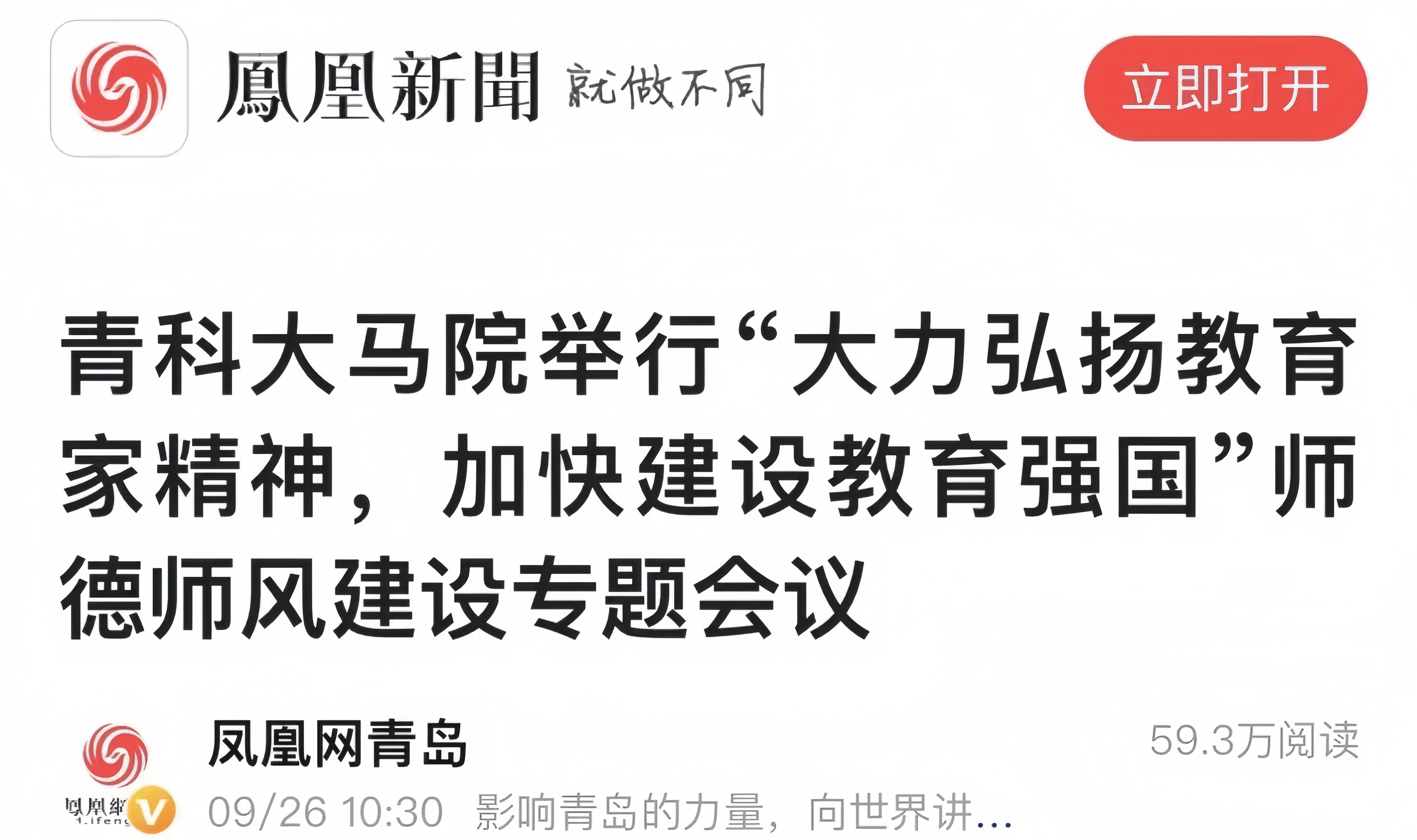 凤凰新闻:青科大马院举行“大力弘扬教育家精神,加快建设教育强国”师德师风建设专题会议