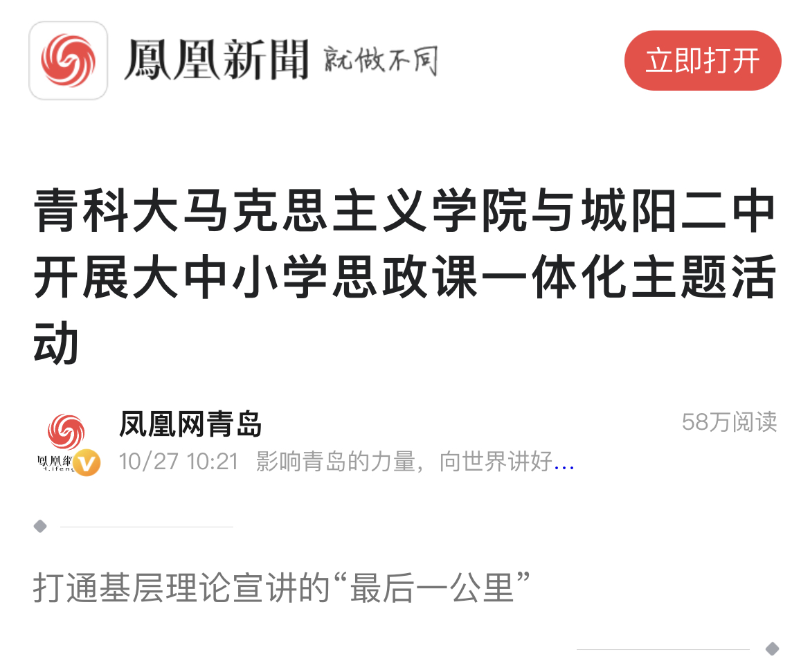 凤凰新闻:青科大公司与城阳二中开展大中小学思政课一体化主题活动
